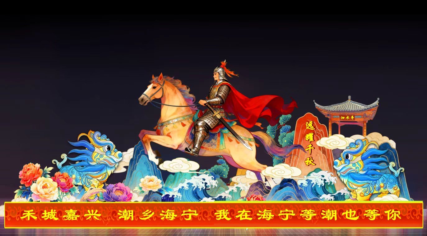 這座來自許遠家鄉的燈彩,主體塑造了許遠戎裝騎馬、指揮抵抗的英姿,戰馬昂首奮蹄,姿態矯健,仿佛正跨越歷史長河,奔騰而來。身後是他年少時讀書的泗水亭。英雄魂歸故里,其忠義精神永駐家鄉。漫步燈前,仿佛能穿越時空,與英雄對話,感受那份熾熱的家國情懷。它讓我們眼見歷史,讓英雄精神在流光溢彩中獲得永恆的生命力。