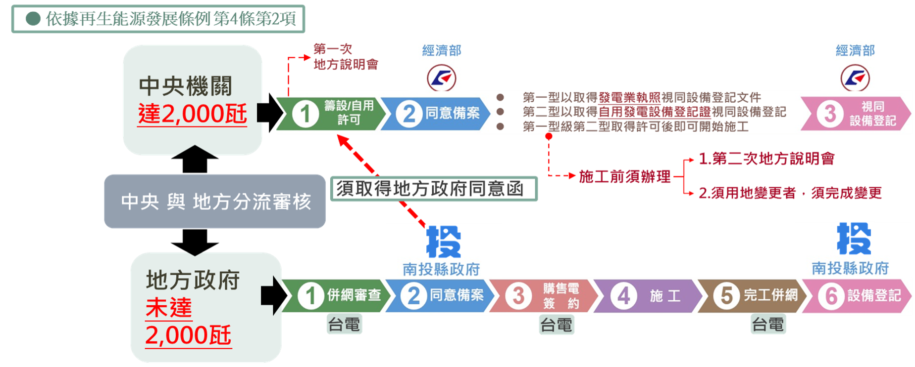 ),未達2,000瓩則由地方政府受理,其流程分別如圖所示: