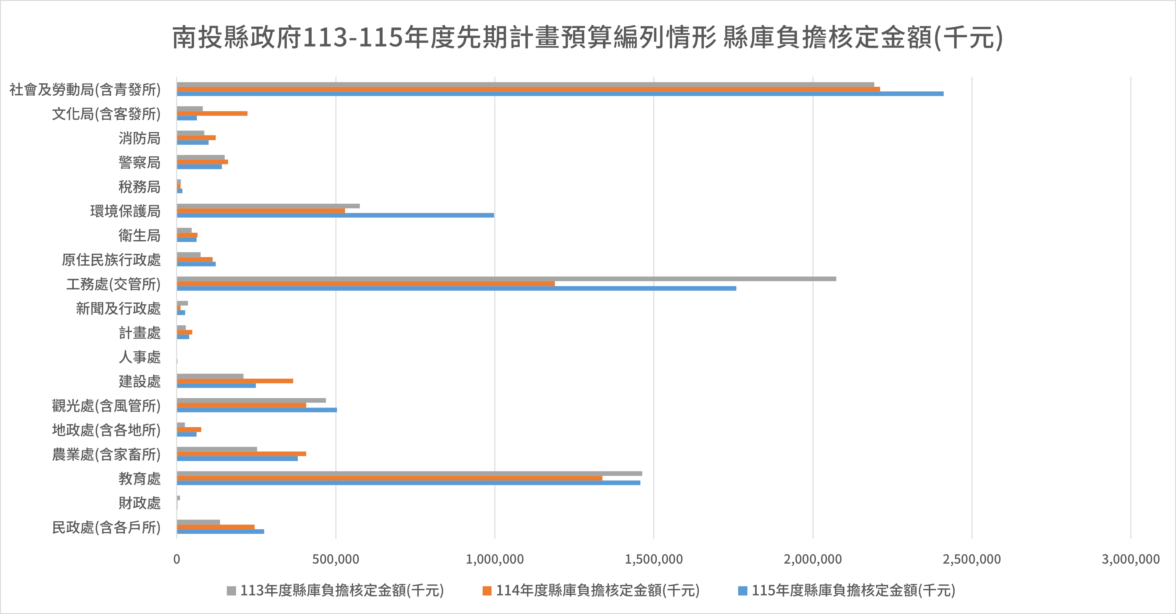 南投縣政府113-115年度先期計畫預算編列情形 縣庫負擔核定金額(千元)