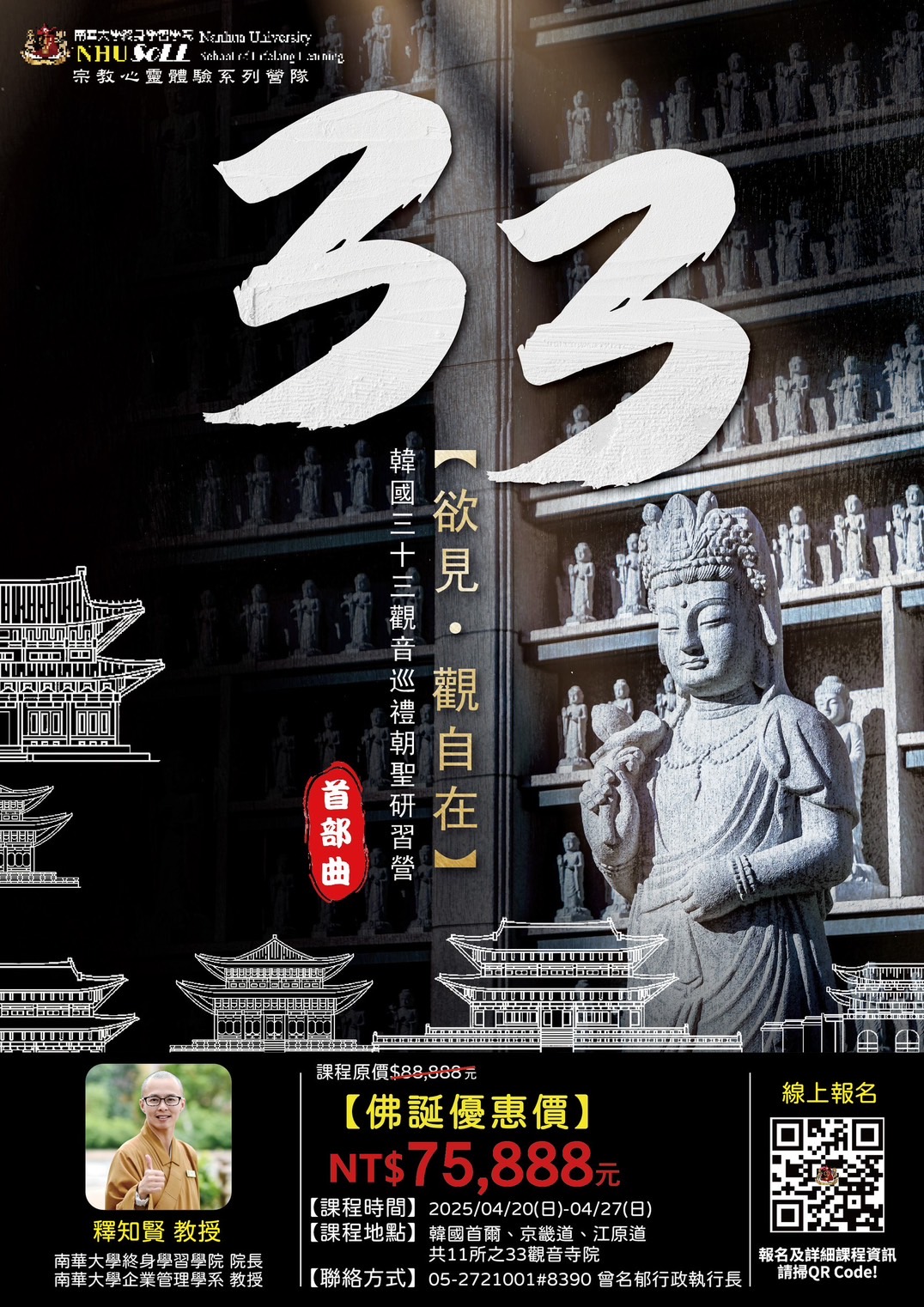 南華大學114年4月份開辦之【欲見‧觀自在】韓國三十三觀音巡禮朝聖研習營(第一期):首部曲營隊資訊,歡迎踴躍報名參加