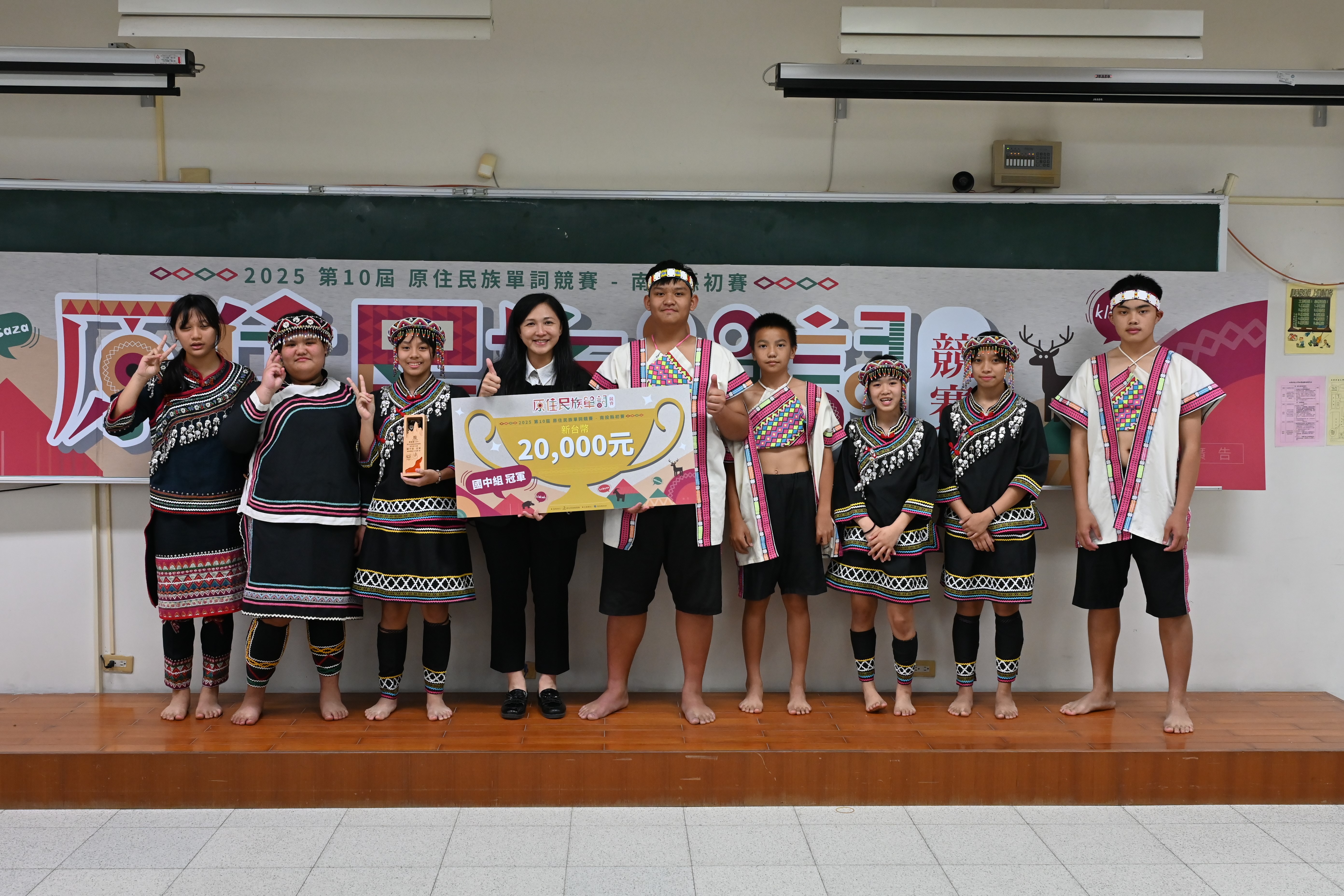 第十屆原住民族語言單詞競賽-南投縣初賽,於114年3月29日於私立南開科技大學辦理完成。本次計有國中組6隊,國小組19隊參賽,總人數達229人次,並且涵蓋布農、泰雅、賽德克、鄒族等4大族群,橫跨9種語言別,參賽相當踴躍!