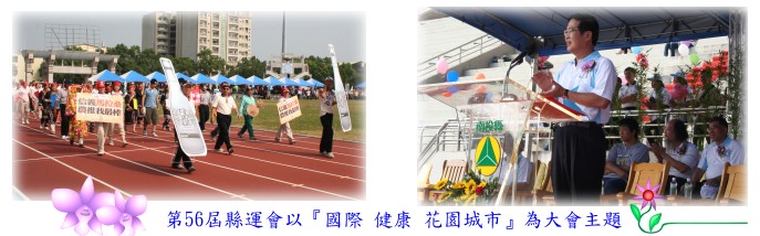 縣府10月31日在縣府大禮堂,舉行南投縣第56屆全縣運動會記者會,由縣長李朝卿主持,李縣長並與縣體育會理事長賴忠政一同為第56屆縣運主題LOGO及獎盃揭幕,李縣長親自發表大會LOGO設計意念,並啟動縣運資訊網路平台,李縣長表示,本屆縣運會以『國際 健康 花園城市』為大會主題,計有近萬人共同參與飆技,開幕當天還有美味的萬人米食活動,歡迎縣民一起來為選手加油打氣。