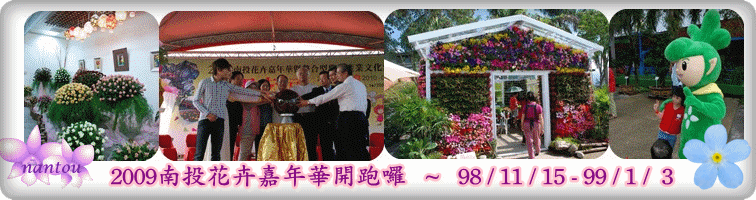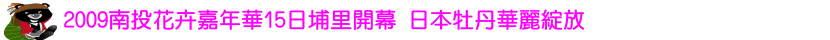 2009南投花卉嘉年華開幕活動,11月15日在埔里鎮花卉物流中心熱鬧展開,出席來賓、活動代言人隋棠及星光幫潘裕文等人共同進行啟動儀式,宣告2009花卉嘉年華正式展開!日本島根縣松江市產業經濟部長能海廣明代表市長松浦正敬,將盛開的牡丹花贈送縣府,感謝縣府協助該市牡丹種植於杉林溪。今年花卉嘉年華活動以埔里花卉物流中心為主場地,從11月15日起到明年年1月3日,內容相當豐富,歡迎遊客踴躍前往參與。