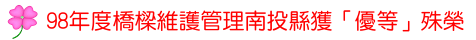 交通部98年度縣市政府橋樑維護管理評鑑結果出爐,南投縣與台北市、台北縣、台南市、澎湖縣等五縣市並列「優等」殊榮,對屢遭颱風肆虐、人力編制又少的南投縣,能獲此殊榮,相當不容易,也是對縣政府團隊的一大鼓舞。