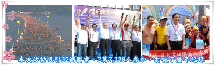 2011日月潭國際萬人泳渡9月4日上午在朝霧碼頭舉行開幕式,由行政院長吳敦義、縣長李朝卿、立法委員林明溱、埔里四季早泳會長洪珉成等人共同鳴槍。本次活動吸引32個國家泳士、2萬7,138人參加,打破了歷年紀錄,總統馬英九也從馬祖特別以電話連線方式為大家加油打氣,把現場氣氛推向了最高潮!吳院長及李縣長等一行人首先到日月潭水社碼頭放流總統魚苗1萬條,象徵水庫生態源源不絕。隨後,李縣長陪同吳院長以步行方式來到開幕式會場,現場萬頭鑽動。由於報名人數高達2萬7,138人,為了活動流暢,在早上7點身障泳士下水後,其他選手也依序游向伊達邵碼頭,讓朝霧碼頭停車場放眼望去都是人潮,相當壯觀。