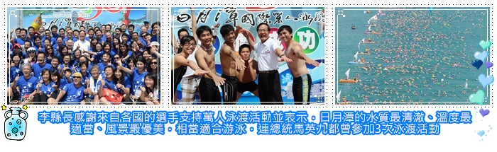 一年一度日月潭國際萬人泳渡活動,今年邁入第30屆,不僅創下33個國家1,761位外籍人士及總計1,336隊2萬8,390人參加雙記錄,嘉義縣新港奉天宮媽祖神駕也破天荒加入泳渡行列,盛況空前。