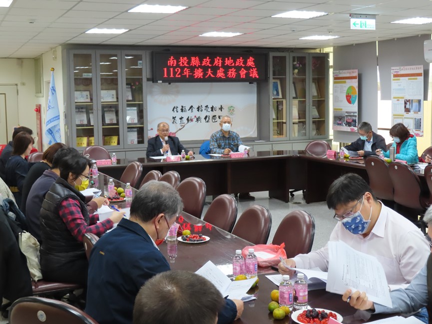 南投縣政府地政處於12/21召開擴大處務會議,本次會議集邀本府地政處及本縣各地政事務所主管同仁針對地政業務進行交流報告,處長唐仁梂表示,希望主管同仁積極進取、尋求創新便民,切勿堅持固有行政流程而疏於變通,致使行政僵化影響民眾權益。