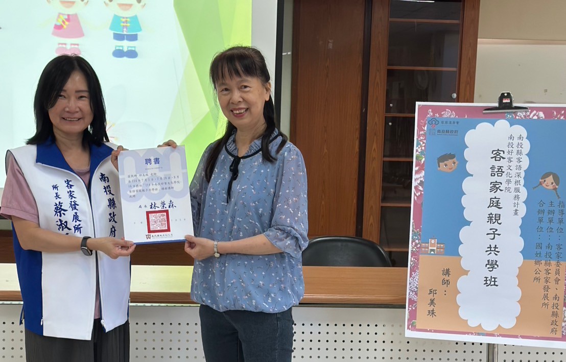 為了鼓勵家庭成員共同學習與使用客語,提升語言傳承的深度與廣度,南投縣客家發展所(以下簡稱本所)於114年7月5日、7月19日、8月16日,週六上午9時至12時辦理「客語家庭親子共學班」。本班以手作體驗等方式,讓學員在歡樂中學習客家文化技藝與語言。