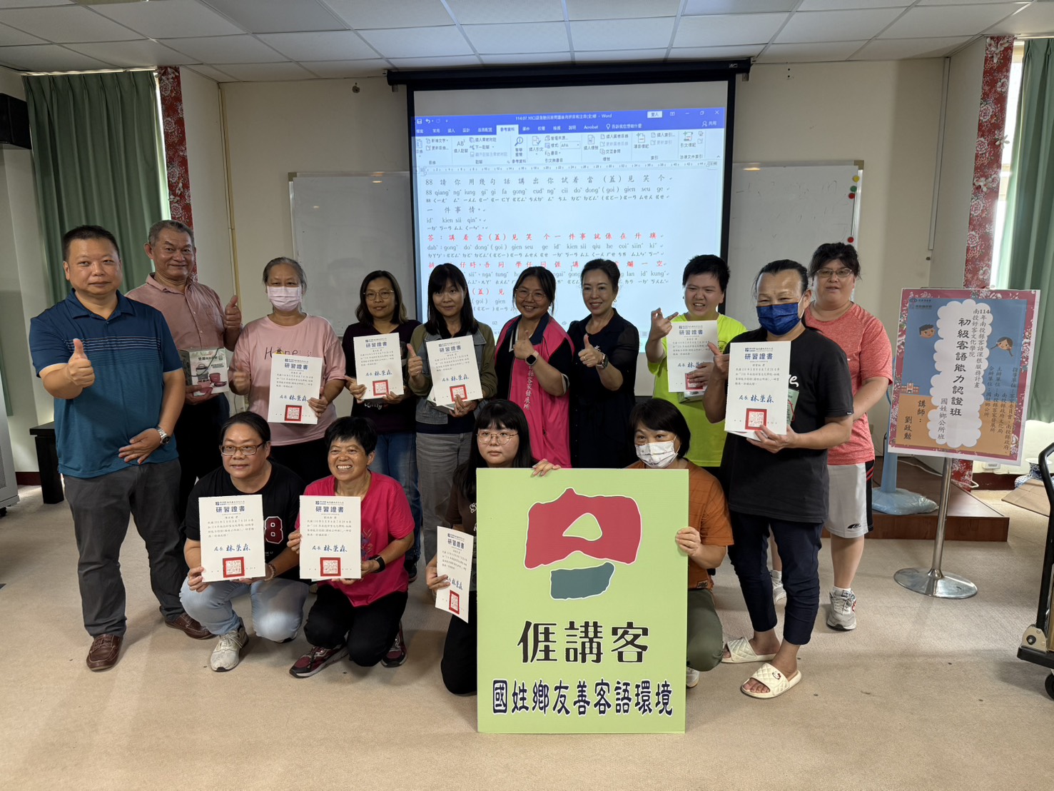 「文化的傳承,語言是關鍵!」南投縣客家發展所(以下簡稱本所)與本縣國姓鄉公所合作開辦「初級客語能力認證研習班」於今(24日)結業,提供民眾終身學習的機會及提升公教人員對客家語的認識與使用能力。