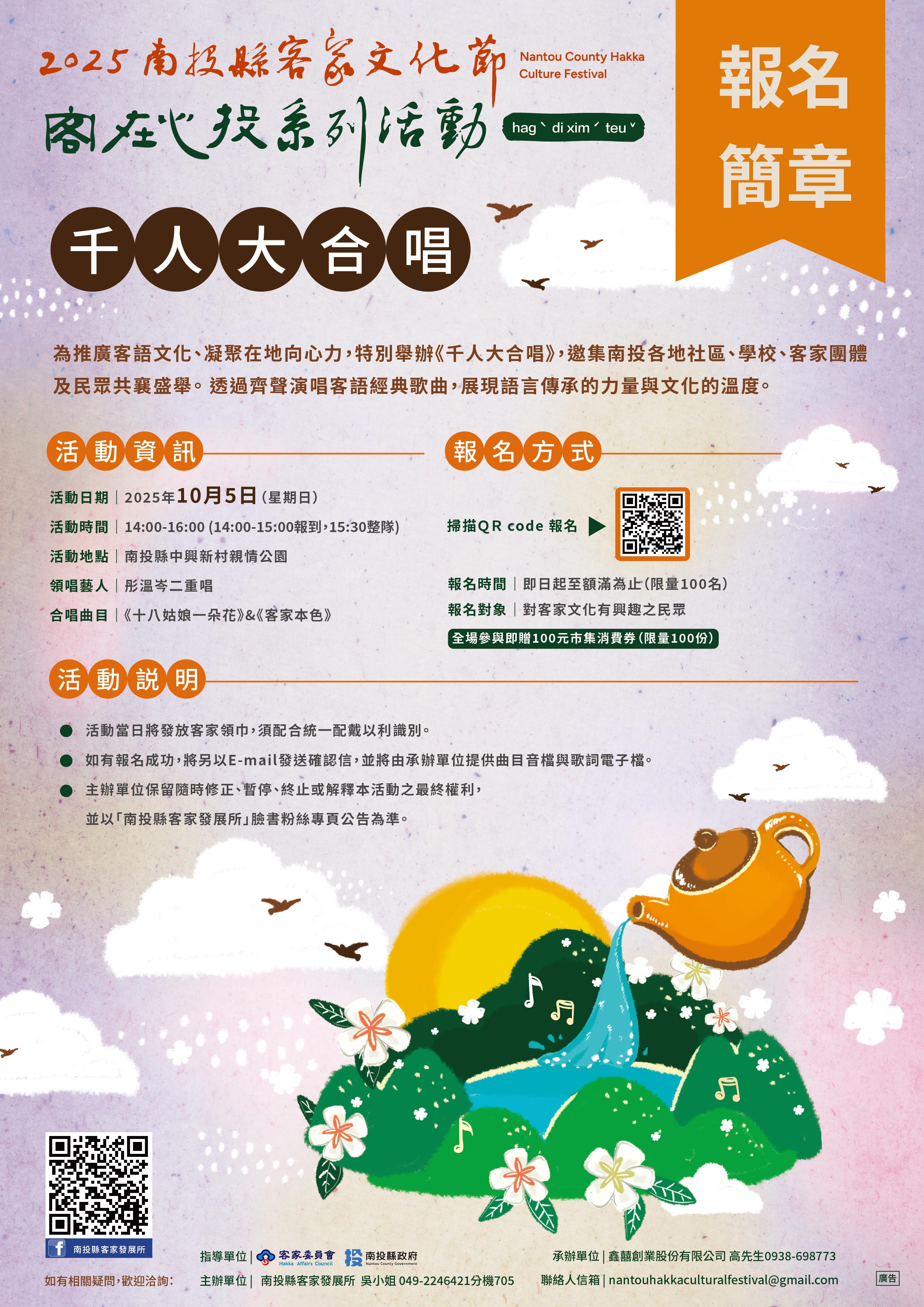 更多活動資訊與報名方式,歡迎至「南投縣客家發展所」粉絲專頁查詢。