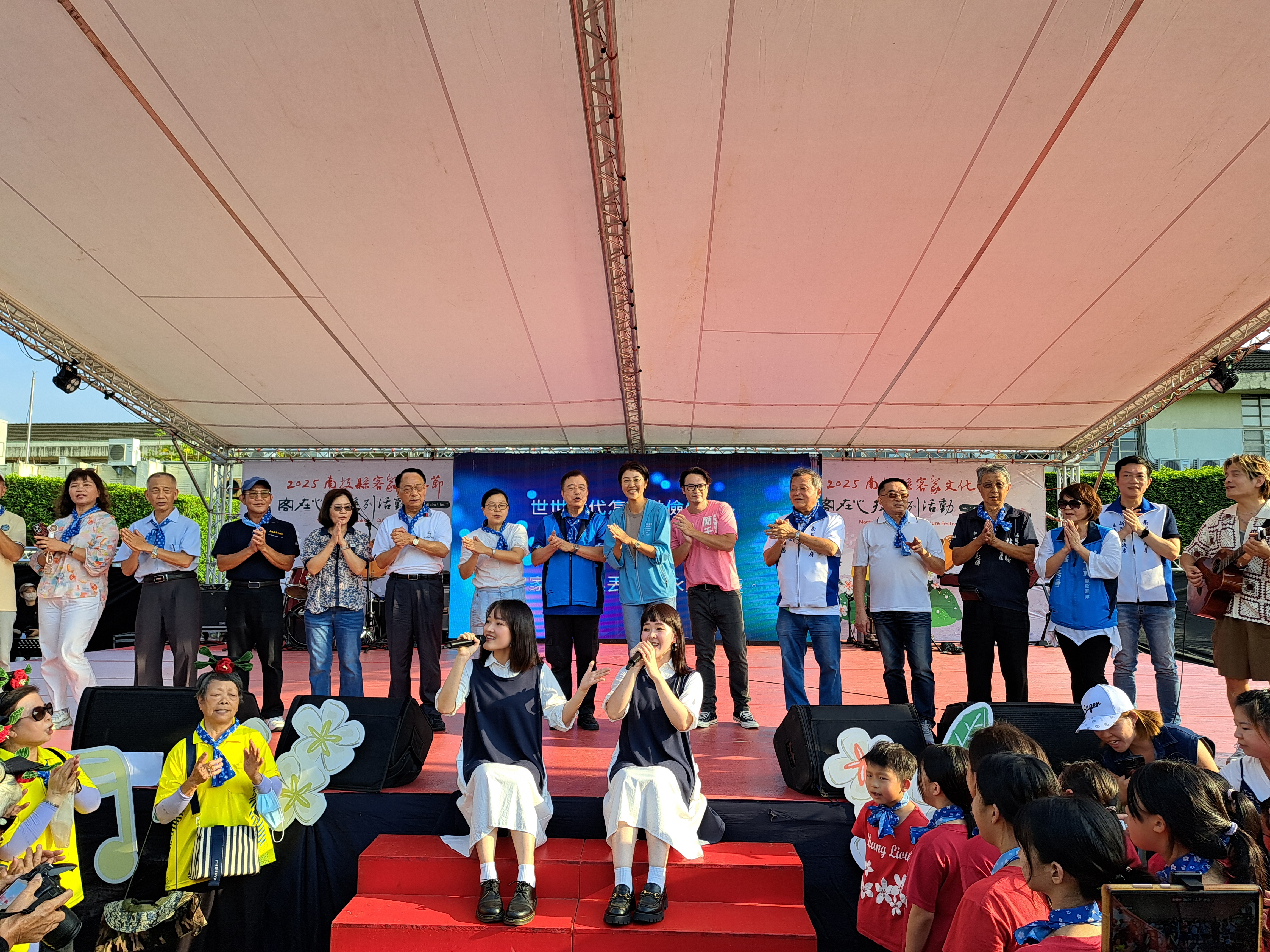 「2025南投縣客家文化節~客在心投」系列活動-草地音樂會,10月5日於中興新村親情公園圓滿落幕!今年首度推出的「千人大合唱」,號召學校、社區、客家協會及現場民眾共同演繹〈十八姑娘一朵花〉與〈客家本色〉兩首經典客家歌曲,以嘹亮歌聲傳遞堅韌純樸的客家精神,場面動人。接續由堅強的陣容帶來精彩的演出-金曲歌王羅文裕、最佳客語歌手吉娜罐子、客家妹妹魏如昀、新生代樂團J HALL樂團、客語嘻哈創作人YAPPY、客家女聲彤溫岑二重唱及跨領域重唱組合守夜人,每組藝人在演出前教學觀眾說一句客語,讓音樂成為語言推動的媒介。現場更結合市集活動,與民眾共度午後悠閒時光、體驗客家文化的魅力,獲得民眾熱烈迴響。
