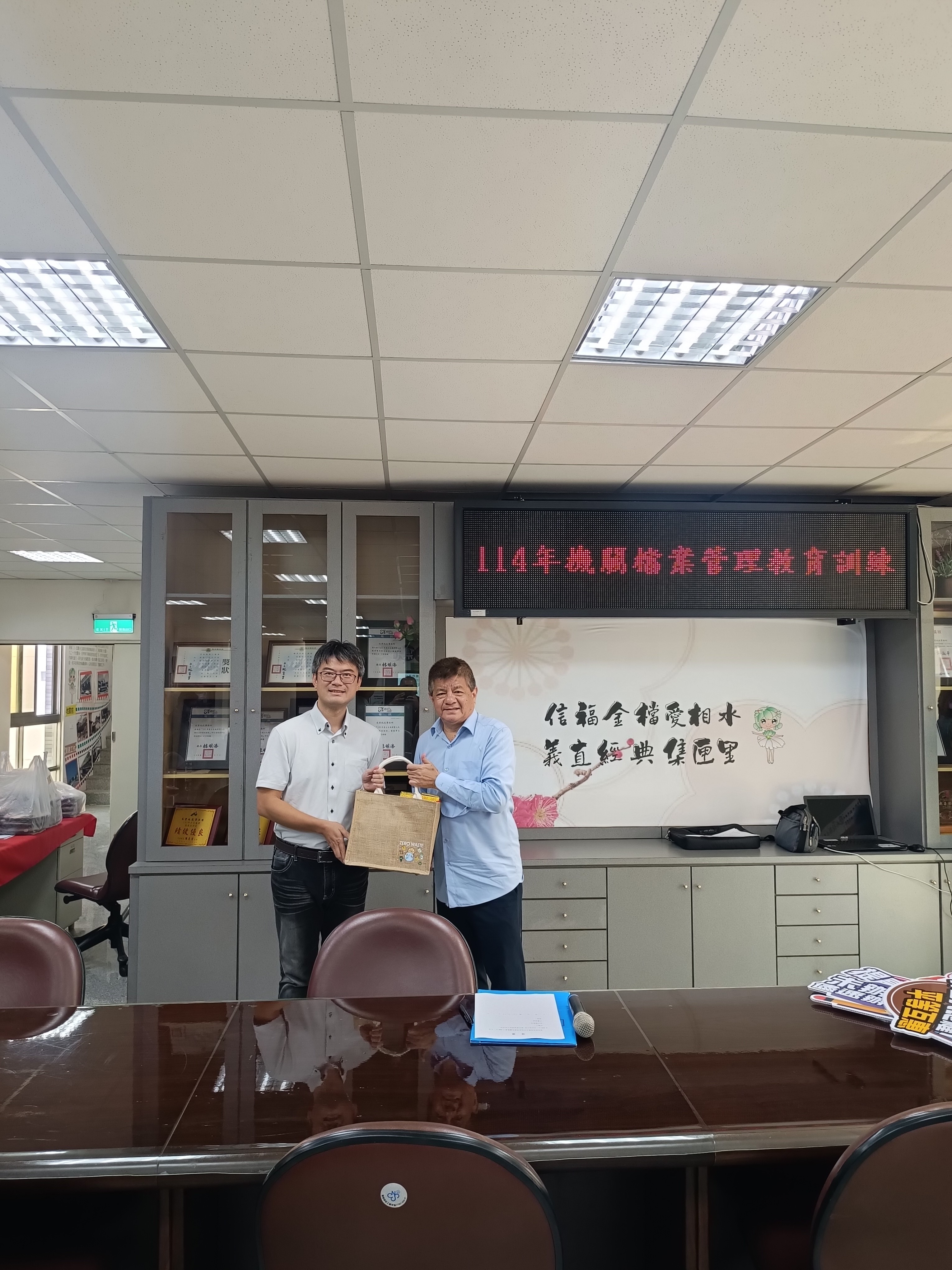 為增進同仁及鄰近機關同仁檔案管理之專業知識與實務操作能力,於114年10月3日特邀臺中市政府大肚區公所杜課長豐吉蒞臨講授「檔案清理」課程。