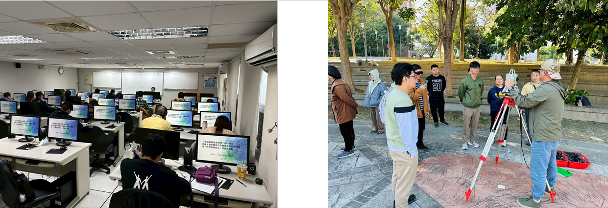 本次訓練課程內容涵蓋土地複丈作業、地籍圖重測實務與相關法令規範、加密控制測量及圖根測量,並安排各式測量儀器的操作說明與實務演練,讓學員在理解理論基礎的同時,也能實際應用於日常業務中,提升工作效率與精準度。