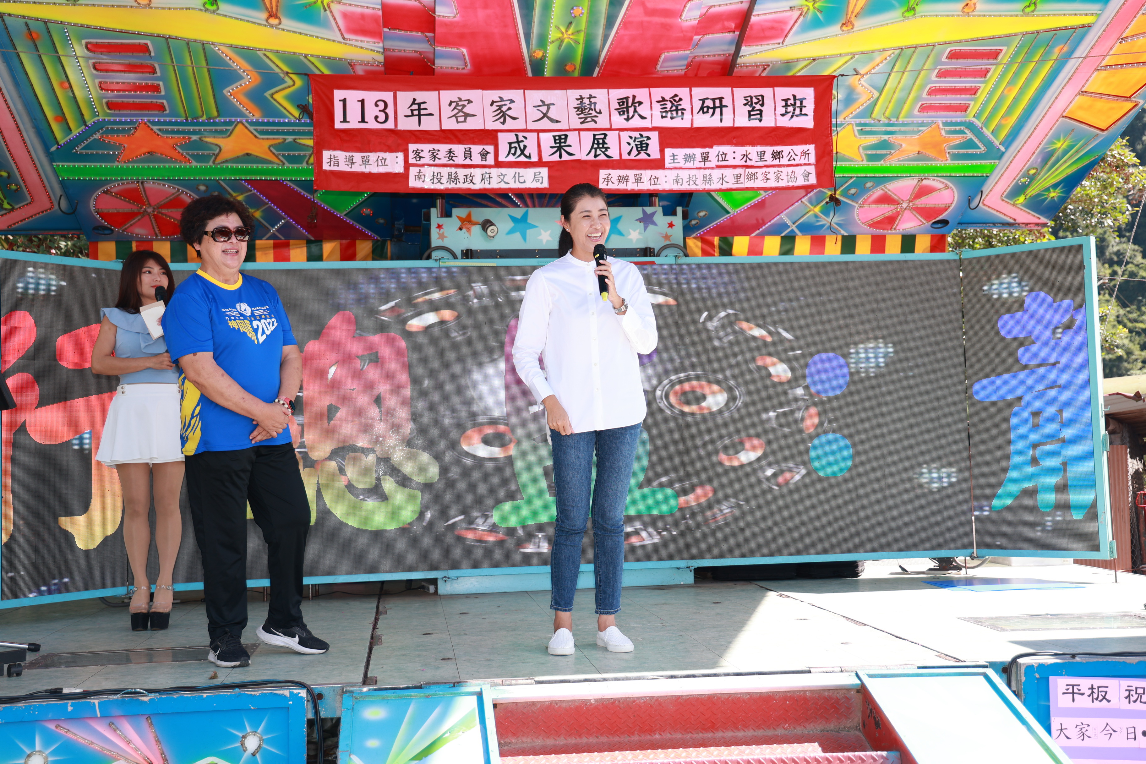 許縣長致詞,用客家話向鄉親問候,獲得掌聲。她表示,新興村福德宮舉辦平安戲,傳承客家文化,縣府推廣客家文化不遺餘力,明年元月一日起,縣府將正式成立客家發展所,將文化局客家科提升為二級單位,人力、經費都將擴增。