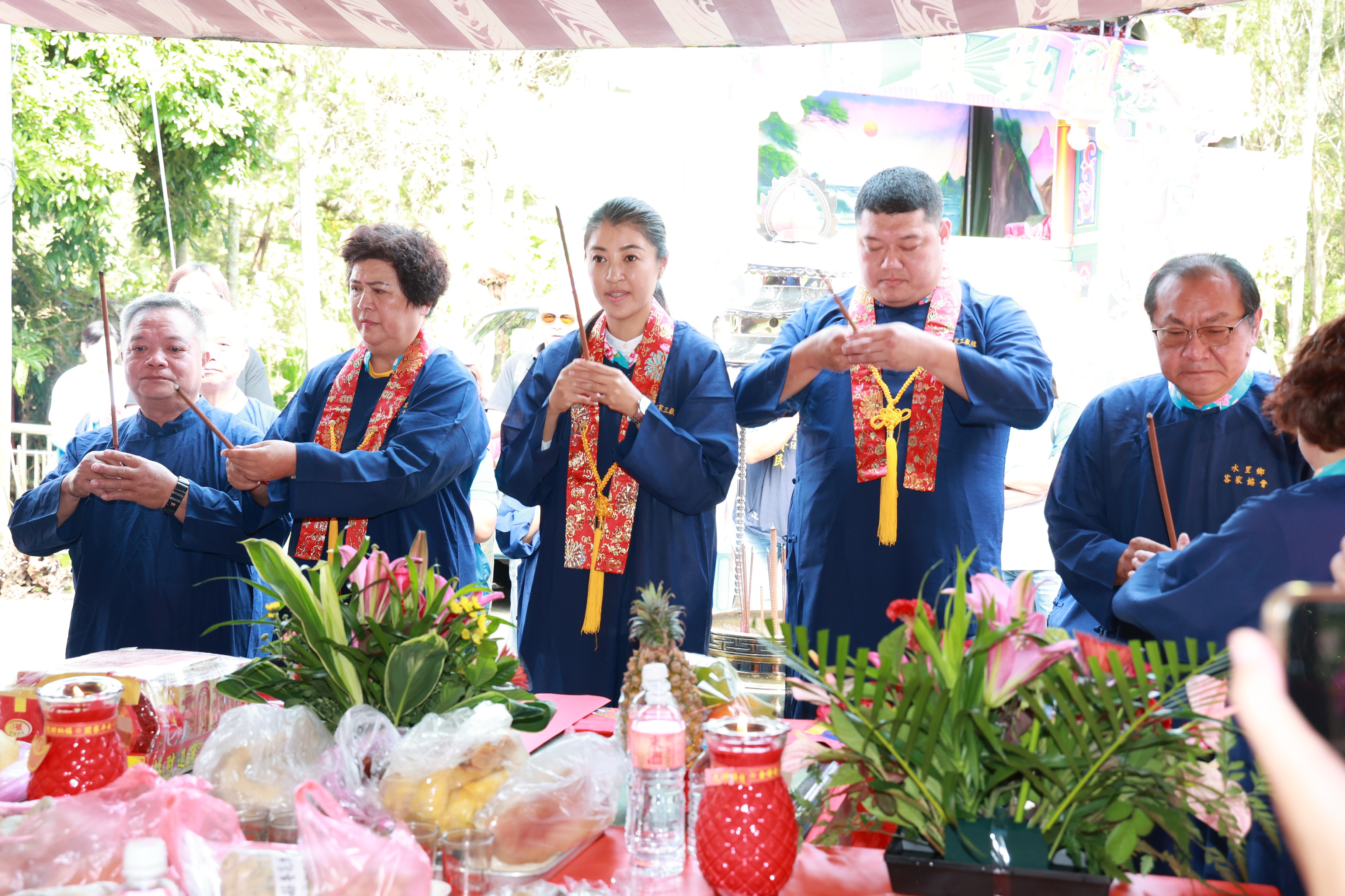 許縣長9日上午到水里鄉新興村,參加好客伯公祈福及節能減碳宣導活動,祈求國泰民安。立委游顥;縣議員黃春麟、陳淑惠、王秋淑;南投縣客家協會理事長賴俊宏等人也到場共襄盛舉。