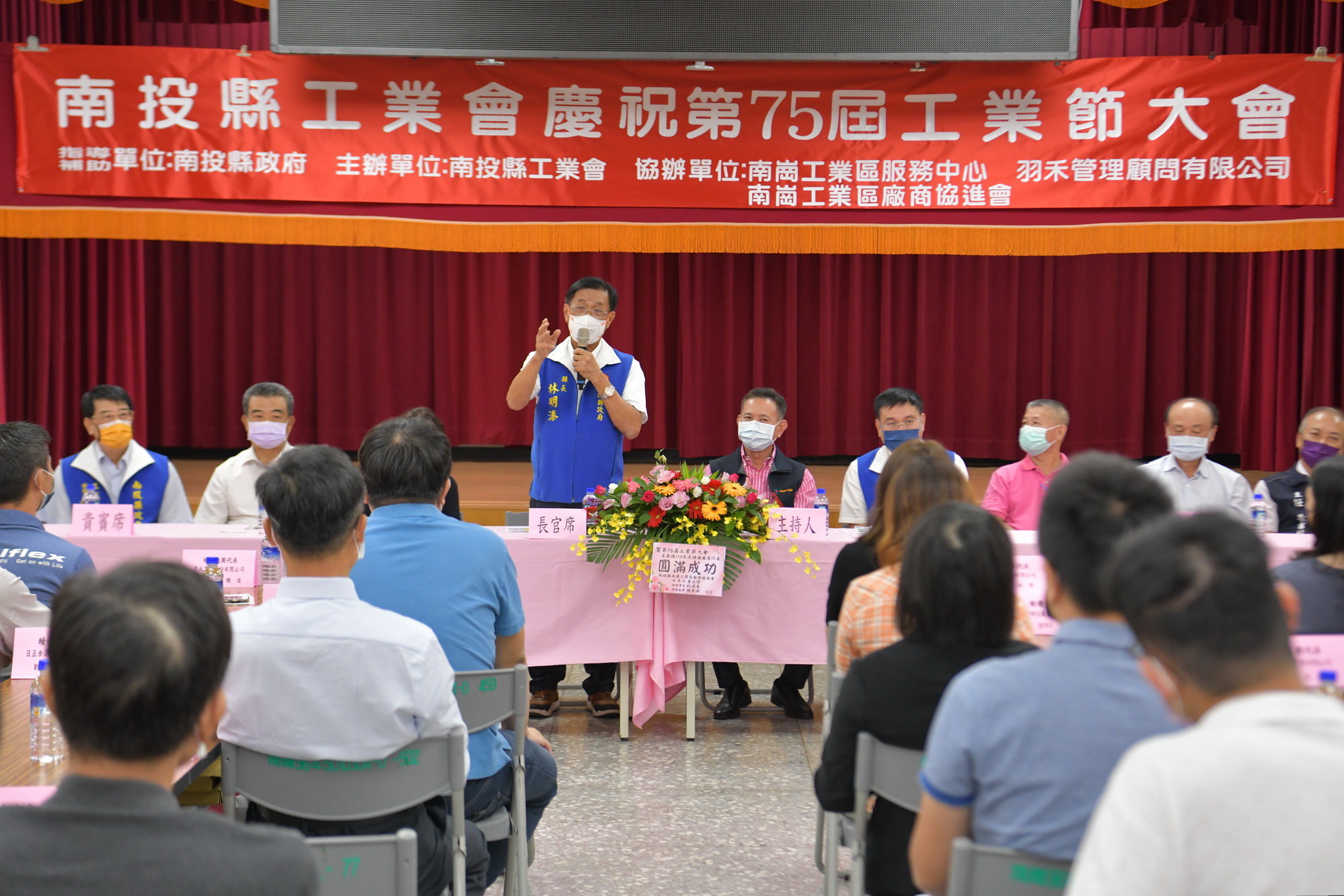 工業節將至,南投縣工業會22日在南投市南崗工業區辦理第75屆工業節大會,縣長林明溱出席並頒獎表揚60家績優廠商及工業盃高爾夫球友誼賽獲奬人員,肯定企業廠商的努力,讓南投縣經濟日益成長,期盼廠商繼續努力,帶動南投就業率,讓民眾都能安居樂業。