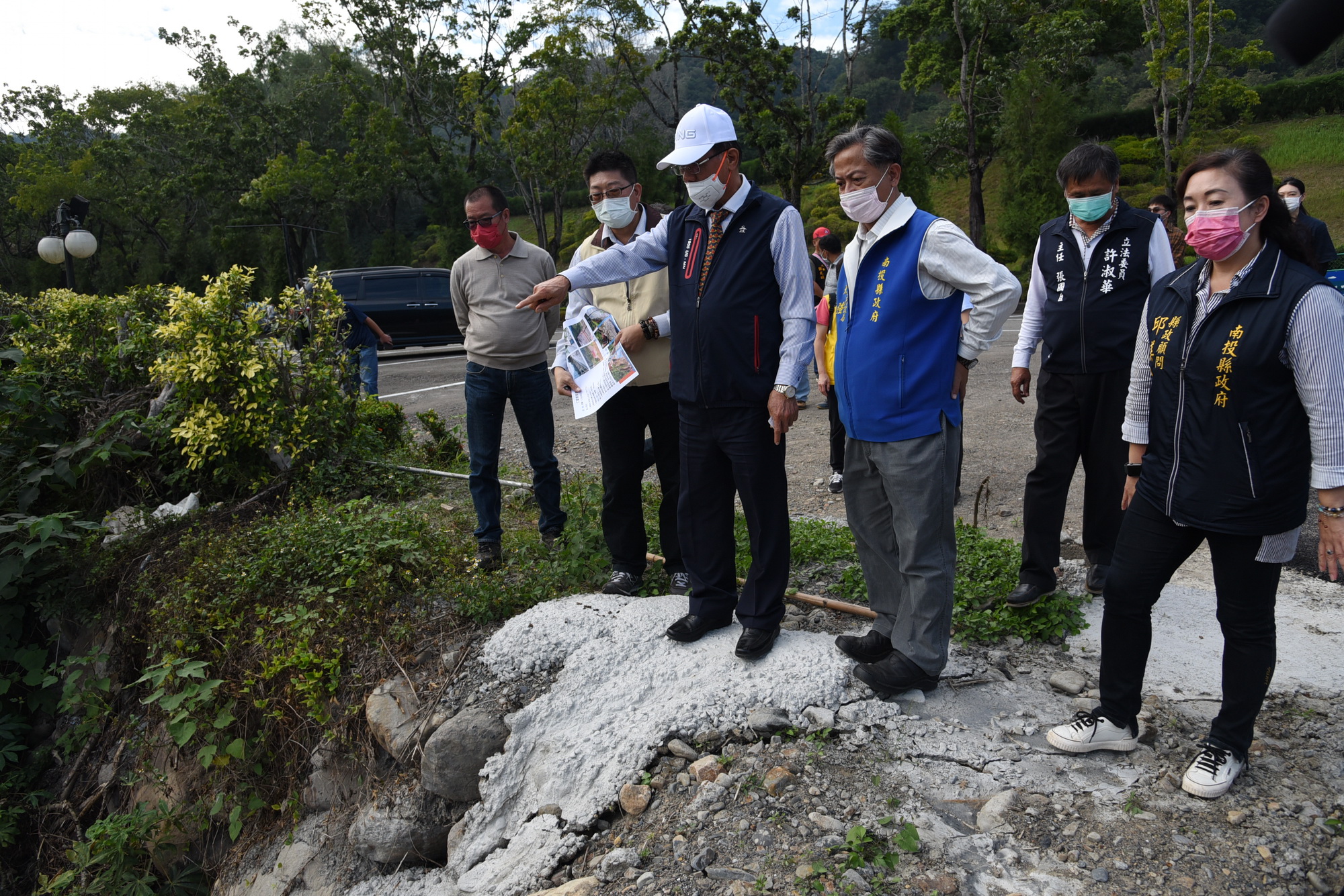 縣長林明溱15日分別前往國姓鄉大旗村、長豐村及仁愛鄉泰雅度假村會勘道路災修復建、坑溝護岸整治及邊坡排水溝等工程,總工程經費預計投入約300萬元進行改善,讓當地民眾能有更安全的道路和更安心的生活環境。
