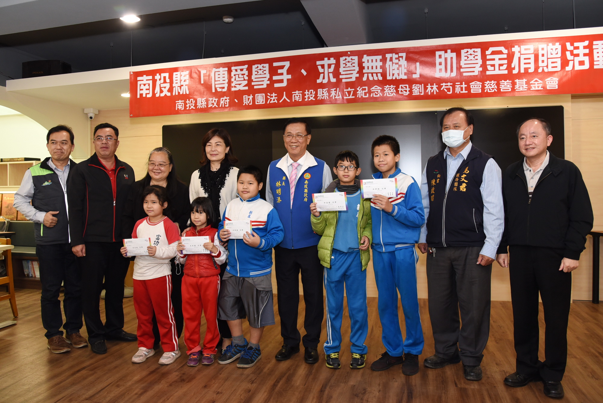 林縣長表示,要特別感謝財團法人南投縣私立紀念慈母劉林芍社會慈善基金會長期以來對南投縣的捐款幫助,這麼多年來持續不斷的捐款,確實幫助了很多的弱勢民眾和家庭,此次透過縣府教育處普查縣內家境困難亟需幫助的學生,發給每人3萬元助學金,就是希望能幫助學生家庭度過難關,也讓孩子們能更專注在學業上,減輕生活中的壓力。