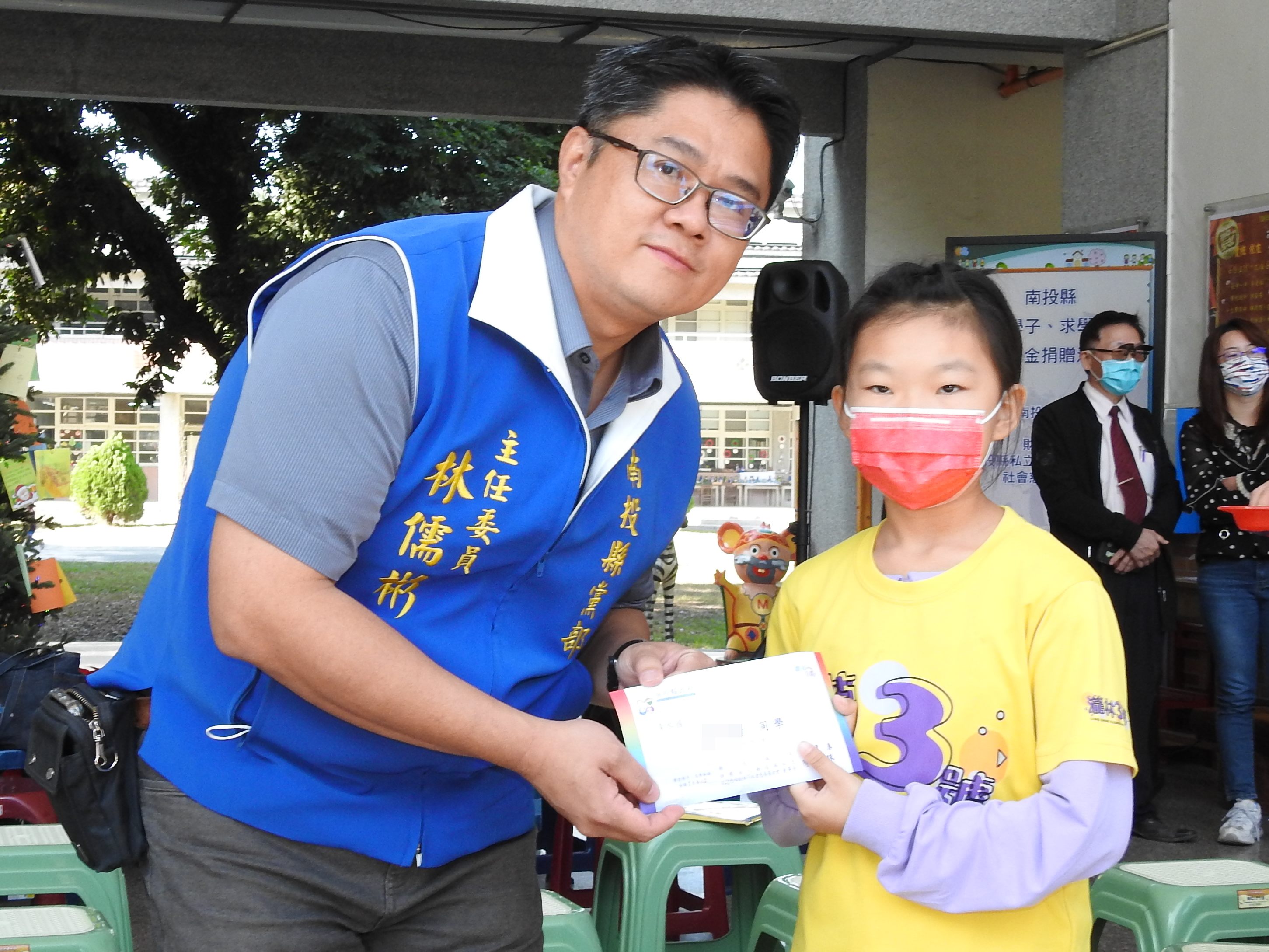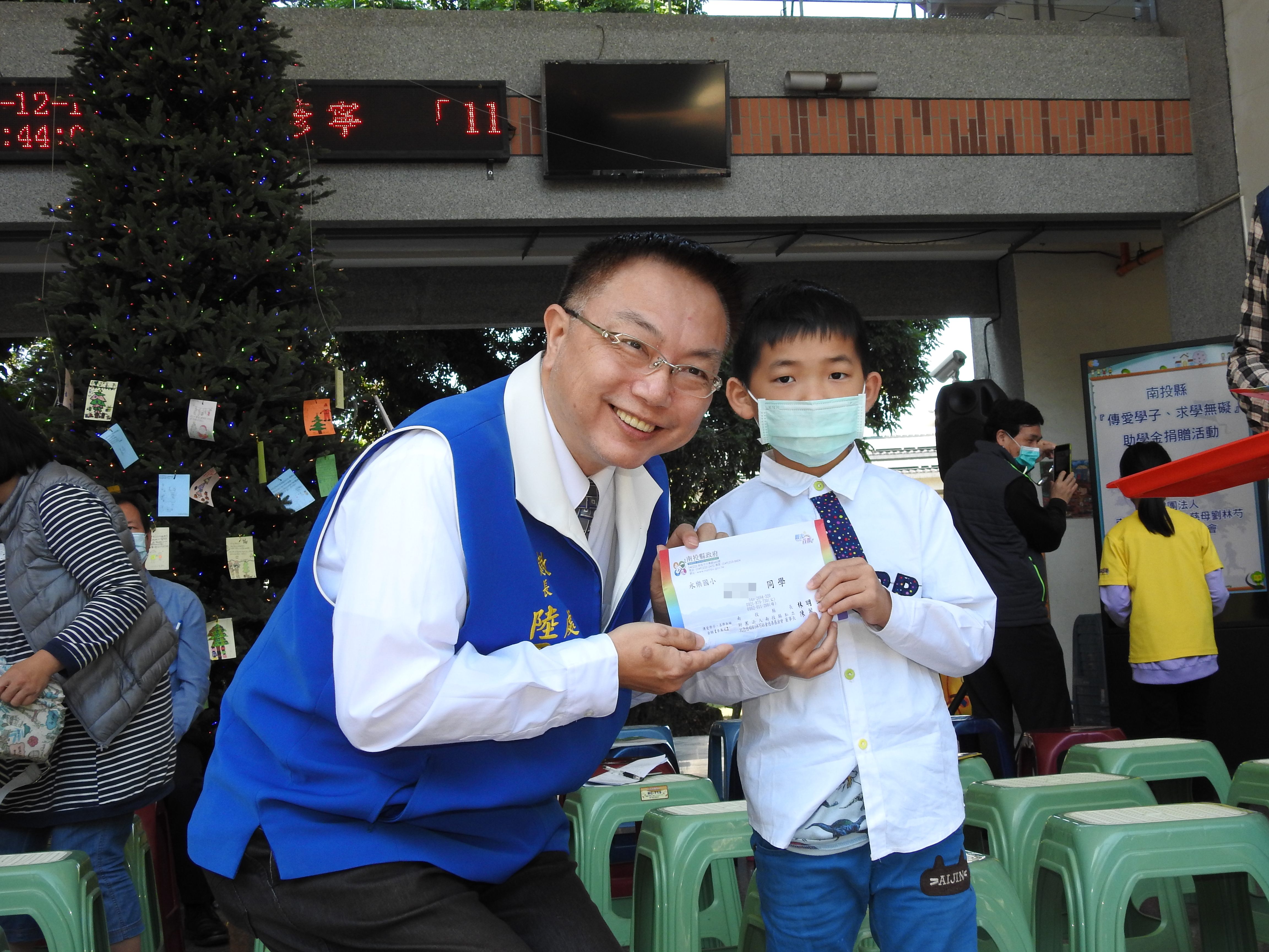 暖冬送愛,求學無礙,南投縣「傳愛學子、求學無礙」助學金第四場捐贈活動,15日在名間鄉登場,縣長林明溱偕教育處長陸正威、國民黨南投縣黨部主委林儒彬,逐一頒贈3萬元助學金給名間、中寮兩鄉11所國中小學的18位經濟弱勢家庭學生,林縣長強調指出,縣政推動再多的硬體建設都比不上教育來的重要,感謝所有學校師長及社會善心企業長期努力與付出,才能日益完善教育工作,讓南投縣的孩子學習成長幸福有感。 南投縣政府協助弱勢家庭學子安心向學,積極尋求社會資源的挹注在「財團法人南投縣私立紀念慈母劉林芍社會慈善基金會」的捐助下,教育處協助普查名間、中寮鄉各國中小學後,提報18位家境困難但積極、認真向上求學的學生,15日在名間國小由縣長林明溱親自轉頒給學子,包括名間、三光、中寮國中及永樂、至誠、清水、弓鞋、名崗、中山、僑興國小等校長陪同學生參加,勉勵同學們積極向上、樂觀學習。 林縣長說,校園裡有許多學生,因為家庭遭受急難或是經濟貧困無法安心學習,因此特別關懷這些學生的學習狀況,近年除指示教育處主動發現或通報有需要的個案,給予實質的慰助金協助,也多方尋求社會團體的資源,希望幫助學生家庭度過難關,讓他們更能專注在學業。 林縣長特別感謝劉林芍慈善基金會大力捐助縣內遭逢急難家庭學生的善舉,更期待有更多社會各大企業響應協力持續伸出援手,一起來關心這些遭受特殊境遇的孩子。 林縣長說,每個孩子都是國家社會最珍貴的寶貝,縣府努力支持每個學校校長老師全心付出教育,也拜託師長避免打罵,多勸導關愛學生,讓每個孩子都能正向學習成長,為了讓縣府免費供應的學生午餐「吃得飽吃得好」,明年提高餐費單價,預估每年需增加約5千萬元的預算,雖然籌措財源相當不容易,但「中央做不到的就由地方政府來做」,另外縣府教育處推動各項政策措施,例如推動會考進步獎勵計畫、建置班班有冷氣、改善運動場、視聽教室、社區共讀站等措施,都不斷朝打造最適合學習的校園環境方向努力不懈。