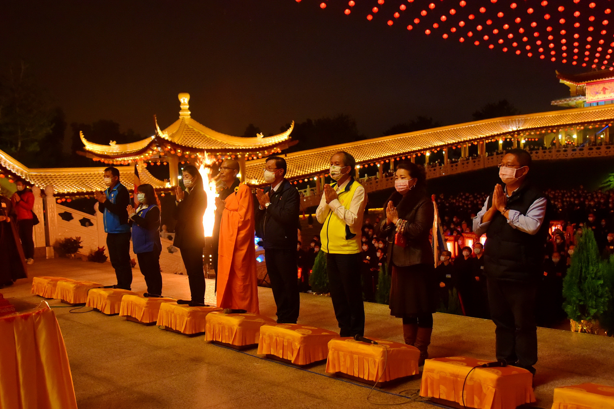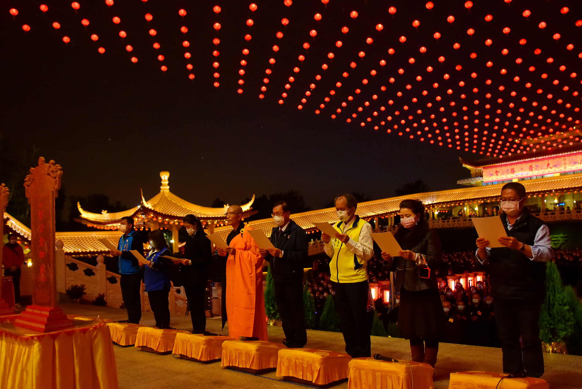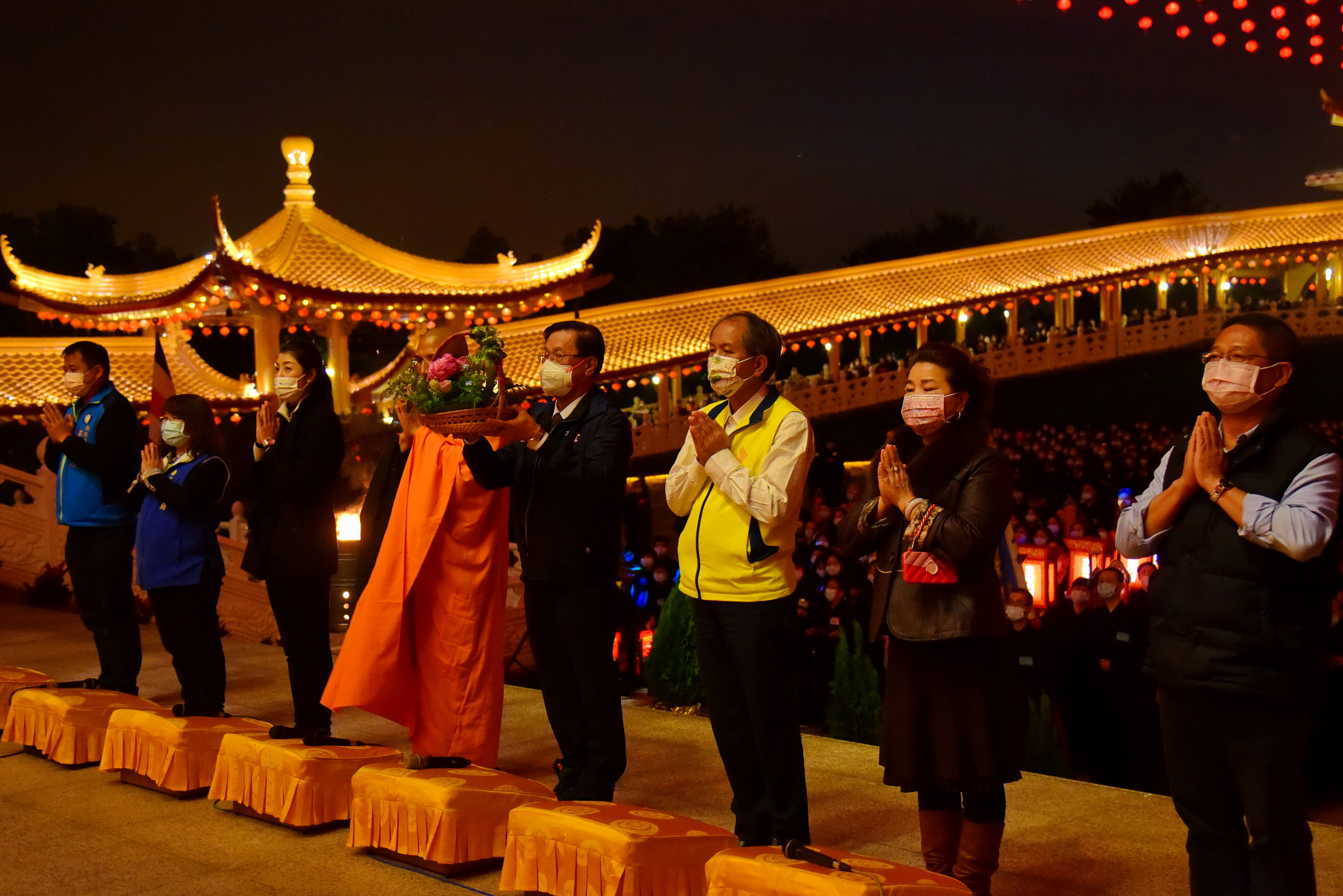 縣長林明溱26日晚間受邀出席埔里靈巖山寺「天佑臺灣祈福大典」擔任主祭官開香祈福,並燃點祈福禮砲為萬民迎祥納福;並代表縣境焚香火淨《聖榜疏文》,祈願佛祖加持臺灣,疫情早日平息,縣民平安健康,安居樂業,儀式相當莊嚴。 當晚,立委許淑華、縣議員王彩雲、黃世芳及埔里鎮長廖志城都受邀擔任陪祭官。 林明溱說,近年來全球受新冠肺炎衝擊,台灣也同受影響,位於南投埔里的臺灣靈巖山寺,面對疫情嚴峻,人心不安的情況下,舉辨水陸法會,祈求龍天護佑,回向庇蔭臺灣寶島,疫情消弭,國泰民安,相當有意義,我也祈求縣民健康,人人都能堅守崗位認真打拼,各行各業都能興隆富足,每個家庭幸福安康。 許淑華也表示,去年開始疫情肆虐,人民深受其害,各宗教都以不同形式祈福消災,全國人民也同心防疫,讓台灣能相較安定,本縣在縣府嚴控疫情,防疫措施得當,因此雖有零星疫情,但控制得宜,得以確保縣民健康安全。靈巖山寺是台灣知名的淨宗道場,在此病毒變異在國外再興疫情之際,匯集眾心願力,辦理水陸法會為全球祈福,祈願世界疫情速得消除,全國經濟起飛,人民健康安樂,南投觀光起飛,產業發展,縣民生活富足,用心令人感佩。 水陸法會由靈巖山寺釋自興方丈和尚主法,法師、信眾護持,法會圓滿成功,並舉行「天佑臺灣祈福大典」,釋自興方丈和尚引領林縣長、許立委等人點燃禮砲後,即依佛教儀軌上香頂禮祈福,過程莊嚴圓滿。