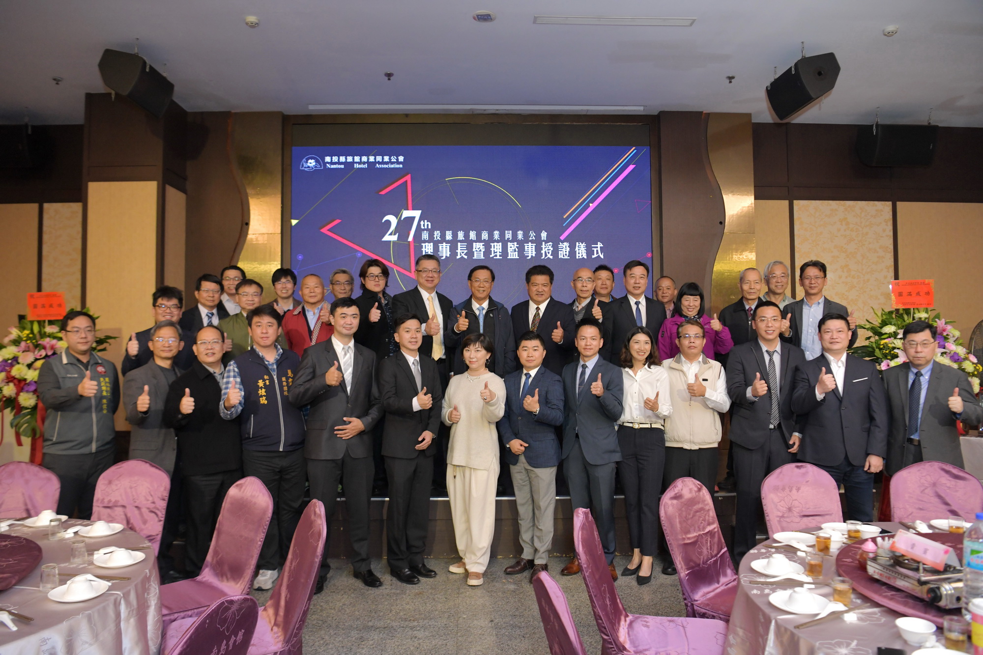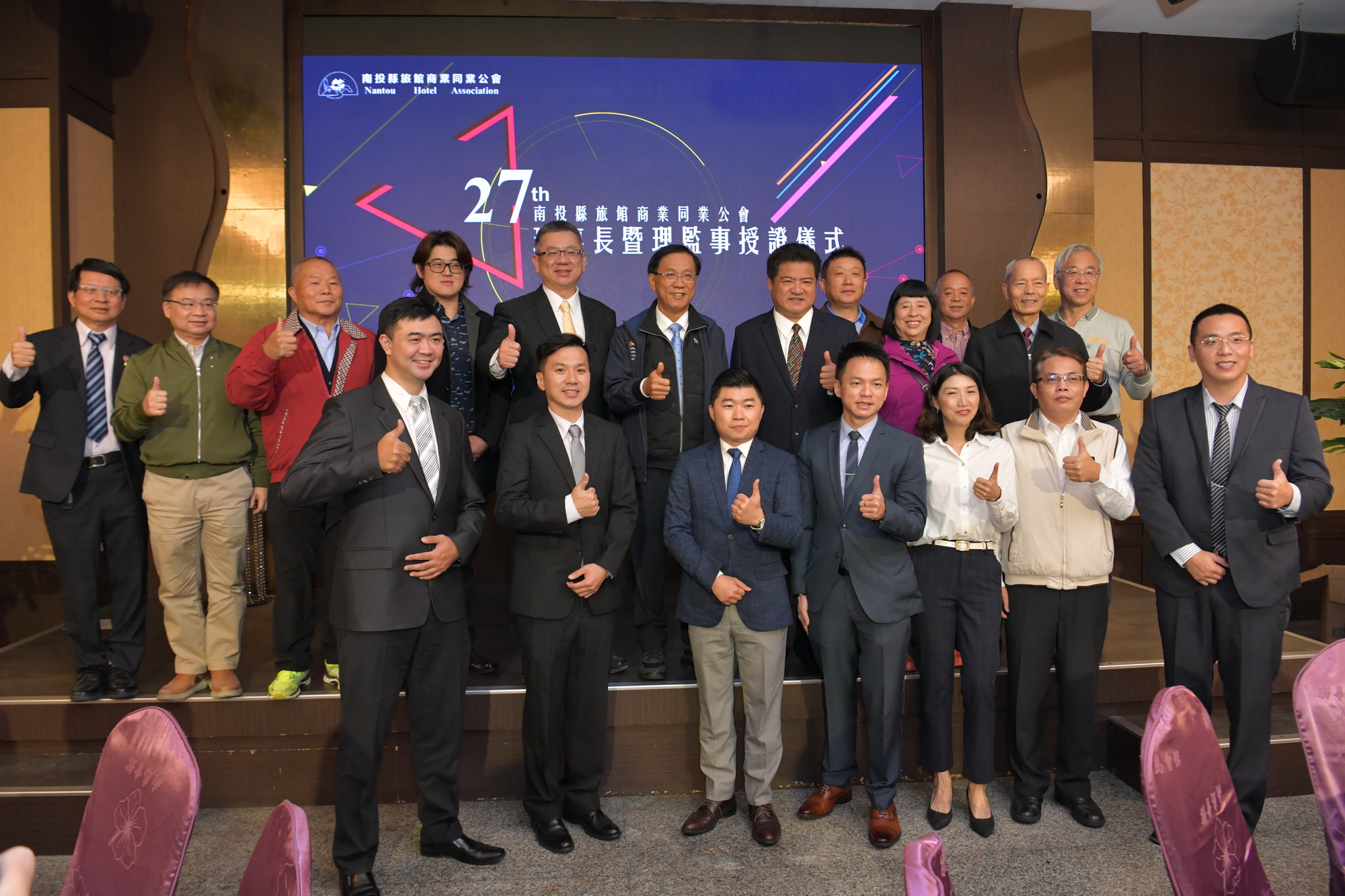 南投縣旅館商業同業公會27日中午在南投市南島會館,舉行新任理事長交接暨理監事授證儀式,由卸任理事長林志穎交棒給回鍋的李吉田理事長,縣長林明溱出席並頒發當選證書,他肯定旅館業者長期在南投縣觀光旅遊的用心付出,期盼大家做好防疫工作,一起努力撐過疫情影響,相信不久後的將來,觀光將重新復甦。   林縣長指出,旅館業者在南投縣觀光產業扮演非常重要的角色,觀光景點開發由縣府主責,遊客到南投後的旅遊則仰賴觀光業者的用心經營,李吉田理事長過去也曾擔任旅館商商業同業公會理事長,此次回歸,期盼能帶領南投業者在疫情中開創更多元化的經營;縣府為了發展南投觀光,目前九九峰生態園區已規劃完成,基礎工程發包中,開發後配合九九峰可愛世界園區,相信將能吸引更多人潮到南投旅遊,另外,埔里鯉魚潭將進行周邊環境整治,名間天空之星開發案也在上星期順利發包,未來南投觀光產業將更加豐富。   李吉田表示,無論旅館、民宿都是一個大家庭,南投縣以和建縣,有好的觀光資源及組織,還有一位對南投觀光建設做得最多、最好的縣長,各縣市都到南投觀摩學習,相信在大家共同努力下,南投觀光會越來越好。   林志穎說,他6年前從李吉田理事長手中接下棒子,期間將餐旅服務競賽擴大為全國性常態競賽,雖然今年因疫情關係停辦一年,但明年一定會辦得更大更好,感謝這段時間所有理監事的幫忙。