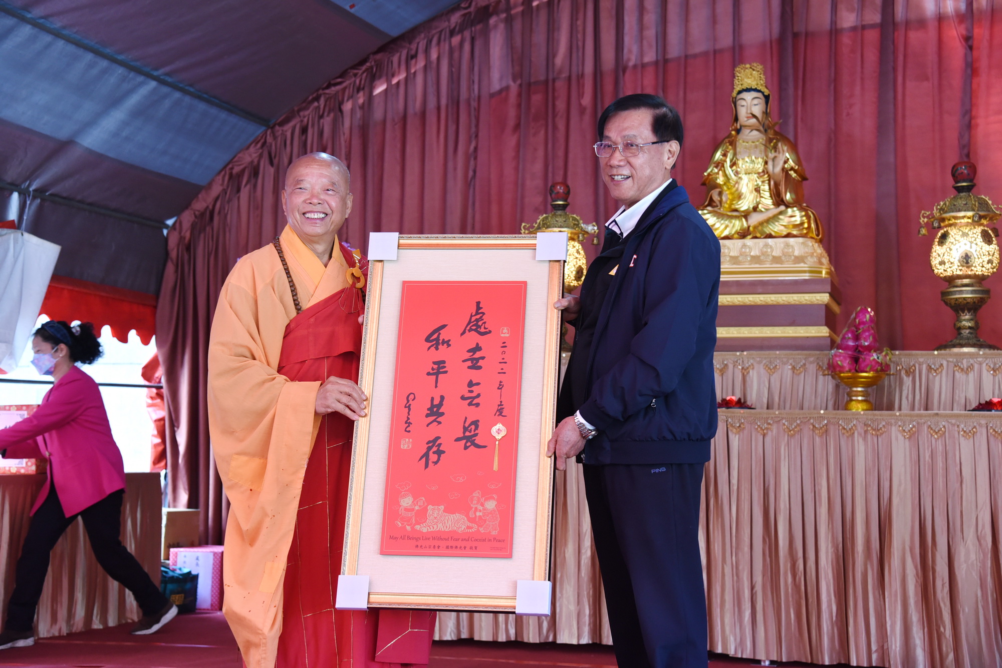 林縣長表示,佛光山清德寺每年都會贊助南投燈會活動,已經連續三年在宗教燈區布置主題燈,動員大批志工及信眾參與,讓南投燈會活動更亮麗精彩,真的非常感謝,尤其清德寺也很重視綠色環保,除做好防疫工作外,在宗教減香低碳等環保工作上也獲得縣府表揚,真的是很讓人佩服。