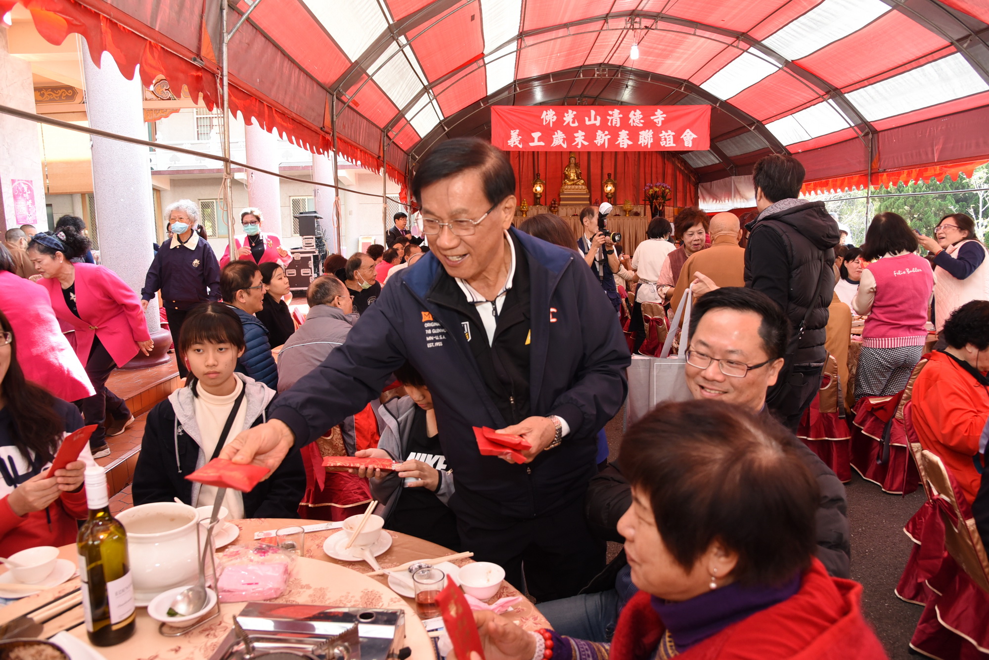 位於國姓鄉柑林村的佛光山清德寺,31日舉辦志工歲末圍爐聯誼活動,感謝志工、信眾的護持和幫忙,活動在住持慧龍法師帶領誦經祈福中展開,縣長林明溱特別到場感謝佛光山連續三年參加南投燈會活動,以及清德寺及四方信眾與志工朋友對縣政工作的支持。