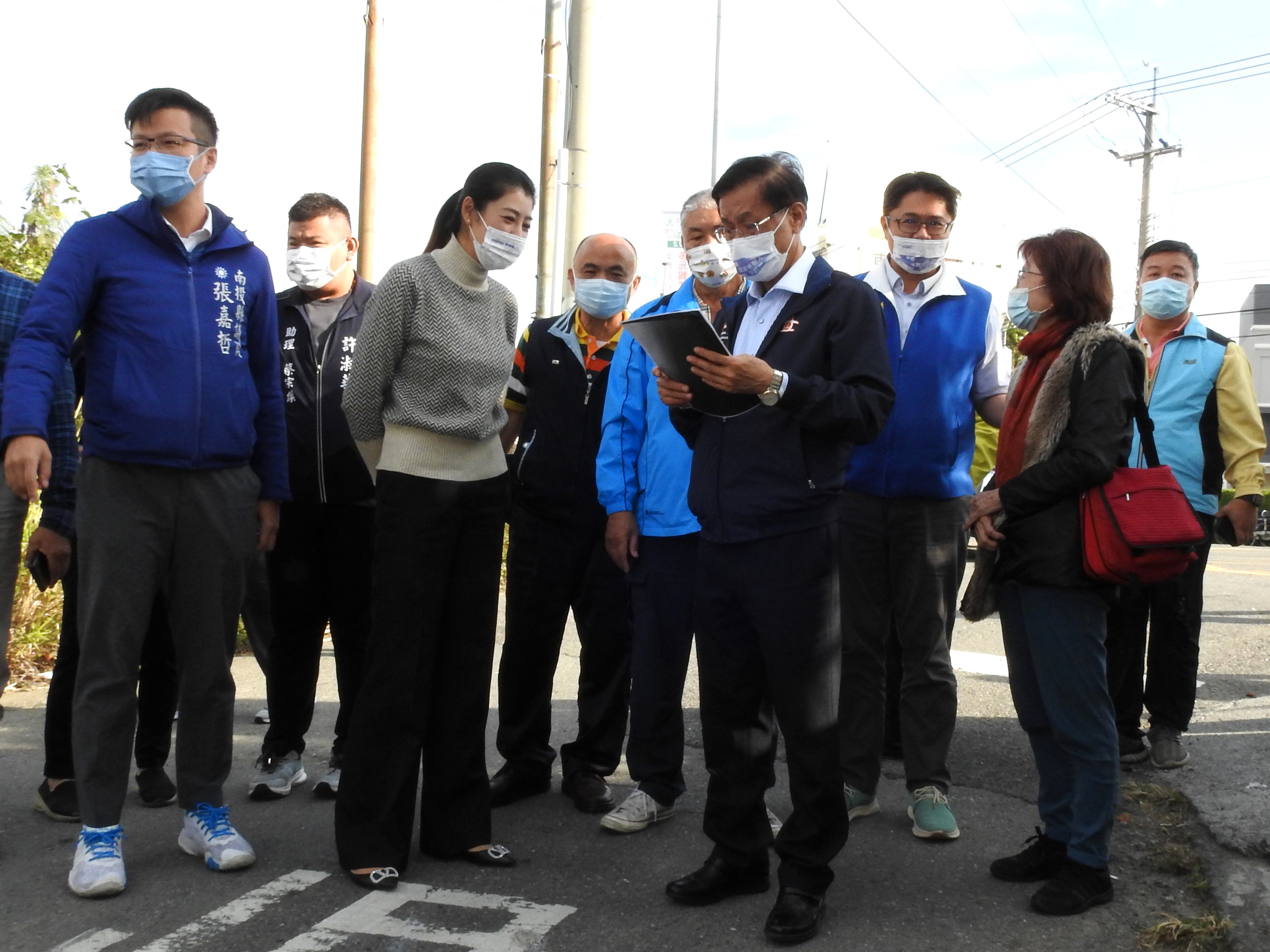 接著,林縣長轉往營南里會勘東閔路776巷及1113巷,同意分別刨除舊有破損的瀝青混凝土,重鋪700公尺長、寬3.5公尺路面及230公尺長、4.5公尺寬的路面,總經費將花費226萬餘元,林縣長指出,這兩條巷道路營南里聚落及營盤國小學童步行騎單車往返營北國中的必經道路,有很長距離道路與邊溝缺乏安全警示,將要求增劃白色邊線及反光鈕提高安全性,同時也建議里辦公處提報1113巷與東閔路口增設定時啟動的交通號誌,在學生上放學時段啟動,確保學童過馬路的安全。