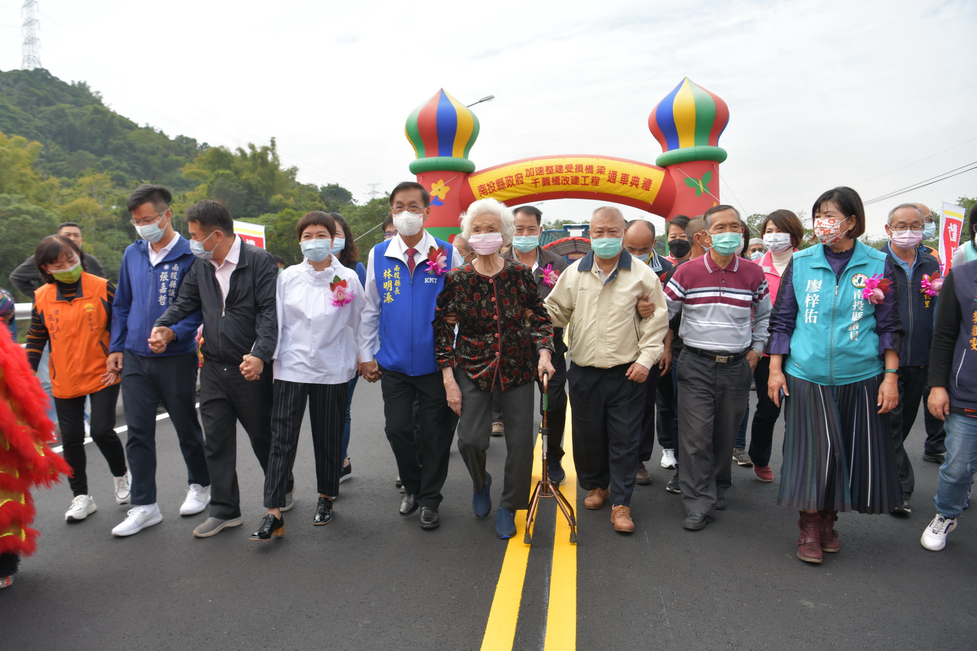 民國72年使用迄今的千義橋,位在南投市與中寮鄉交界處,因橋齡老舊,年久失修,縣府向中央爭取核定約6,347萬元施工整修, 28日重新通車,附近民眾都到場歡慶通車,縣長林明溱剪綵後,也牽著住在附近的九旬長者一同步行,感受安全又平坦的新橋,阿公阿嬤說,感謝縣府改善橋粱,讓他們往返南投中寮更加安全,運輸農產也更為便利。