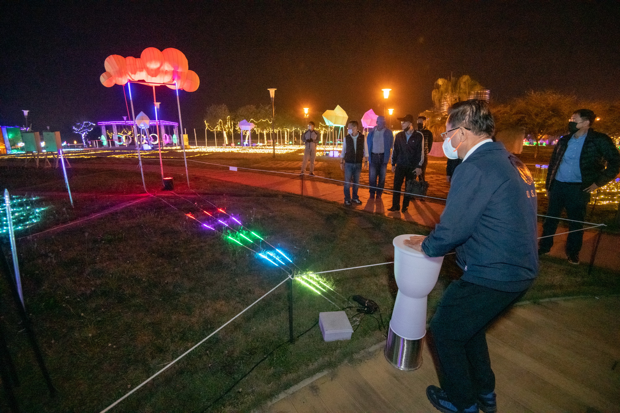 觀光處陳志賢處長出席活動表示,「2022南投燈會」持續追求創新,今年除了智慧互動燈區以外,創新主題燈區也有幻彩大地劇場,以及諸多互動燈具,歡迎大家過年期間來體驗。同時也呼籲遊客,要遵守防疫規定,入場後配合辦理實聯制。縣府也將落實場域消毒工作,以保障大眾安全。