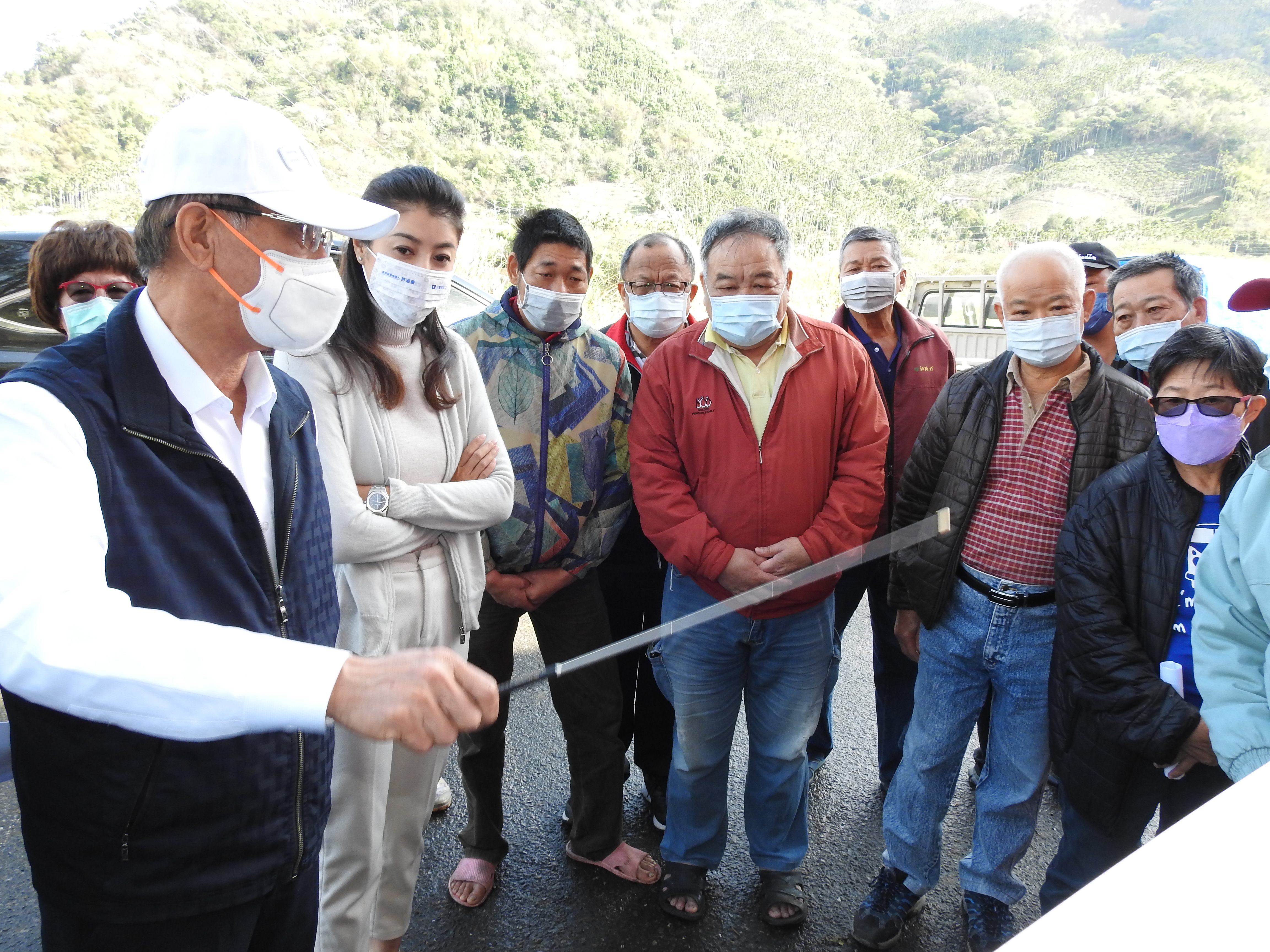 信義鄉明德、望美、神木、人和等村分別有簡易自來水系統分散設備老舊、道路排水溝闕如、路面崎嶇難行等問題,縣長林明溱25日偕立委許淑華逐一會勘,不僅當場敲定經費約340萬元的十甲社區簡易自來水改善工程,也承諾趕在7月初完工啟用;並且一併簽核總經費逾400萬元的其它4件擋土牆道路排溝改善工程。 林縣長與許立委25日的會勘行程由縣府原民局長史強率該局建設科團隊陪同,包括縣議員全文才、蕭志全、謝明謀、陳淑惠、鄉代李國源、明德村長吳瑞龍、同富村長謝在坤、神木村長忻軍、望美村長田美玉及眾多地方鄉親都到場。 林縣長指出,明德村十甲社區簡易自來水改善工程非常有必要,縣府爭取到水利署補助240餘萬元,縣府再配合21%工程款98萬多元,將重新架設1.5吋的高壓水管總長達7公里,還包括3公里是能避開山崩破壞的吊掛鋼索工法,同時還增設5座不鏽鋼減壓桶及蓄水設施,預計4月發包7月3日就能完工啟用,屆時明德村十甲社區195戶逾500多位居民的生活、灌溉用水就能徹底獲得穩定供應。 隨後,林縣長轉往望美村台21線指標100K+670處的望美段1807-2地號,實地了解道路下方基礎邊坡出水保護不足的問題,林縣長說,這處位於陡峭山坡的台21線路段,既有的道路擋土牆下方山坡仍持續滲流地下水,地方民眾擔心會威脅道路及附近民宅安全,由於已屬省道路權外,因此在縣議員全文才提案建議下,縣府將動動支約95萬元,從正方施設高約3.5公尺長約18公尺的擋土牆,並改善附近長40公尺寬4.5公尺的混凝土路面。 接著,林縣長來到神木村1鄰聯外道路,針對尚有長達160公尺的路段未施設排水溝,而且路面龜裂崎嶇,遇水道路變成水路人車通行險象環生的問題,林縣長說,將在新設排水溝的同時,一併將老舊破損的柏油路面刨除重鋪徹底改善,經費約90萬元,縣府全數支應。 另外,信義鄉望美村開墾地道路也獲簽核160萬元新設長度4公尺寬高各2.5公尺的3孔箱涵一座,並增加4座3.5公尺高,長5公尺的翼牆加以保護,也會完成銜接既有道路的引道;而人和村第6鄰道路也會重鋪230公尺長,2.5公尺寬的混 凝土路面改善行車安全。