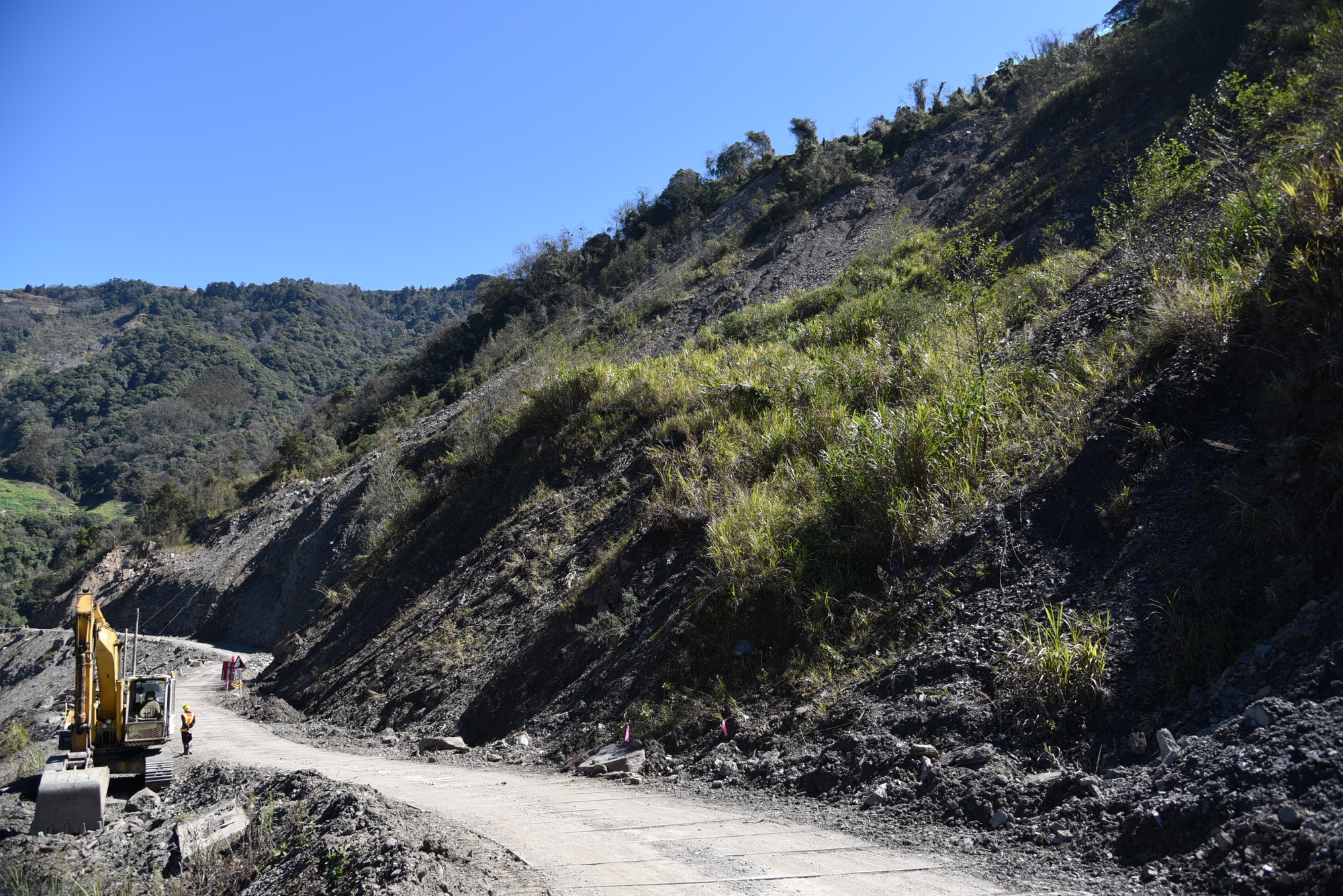 投89線15K+850K處2月初時因連續降雨及地震,導致邊坡再次坍塌,土石滑落造成道路中斷,目前雖已暫時清除路面石塊恢復通車,但該路段已成常態坍塌及地滑區,縣長林明溱11日特別前往勘查,與現場工區人員研討因應對策,將會委請工程顧問公司規劃提出專業評估,提出最有效的復建方案。 林縣長由工務處副處長李坤煌、仁愛鄉代理鄉長張子孝、縣議員廖文賢、代表會副主席蕭傳吉、代表吳明德及鄰近多位村長陪同,深入投89線(原力行產業道路)會勘,了解該處大坍方路段的最新狀況,並討論初步方案。 林縣長表示,投89線道路坍方中斷,將使仁愛鄉發祥、力行、翠華3村6部落2,000多位居民交通出入及行車大受影響,改善該路段逢雨必坍的情形,提升道路道路品質,縣府這幾年已陸續改善沿線的破損路面及危險路段等工程,此次針對15K處再次崩塌,縣府會再與顧問公司研議最佳復健方案,希望能解決遇雨崩塌的難題。 廖議員則表示,投89線多年來歷經多次風災豪雨摧殘,道路狀況很差,在林縣長大力整治下,針對災害路段地形地質,採取適當工法復建改善,現在沿線路況已大有改善,日前發祥明隧道的完成更是重要指標,讓沿線居民交通安全大大提升,農產運輸也更加便利平穩,對部落經濟發展有很大幫助。 縣府工務處指出,投89線15K+850K處大型坍塌區,已是重複致災區,縣府長期監測發現,除了邊坡有常態性崩塌狀況外,已有淺層土體滑動現象,且崩塌源頭已延伸至上方蔬菜種植區,未來仍有持續坍塌的可能。經現場研議後,除評估施設便道將坡面鬆動的土石清除的可行性外,原則上將設置兩層落石平台做為土石緩衝外,上邊坡則考慮比照49K處的貨櫃工法當擋土牆,並針對上邊坡開發區妥善做好水土保持措施,降低逕流水持淘刷邊坡的情況。