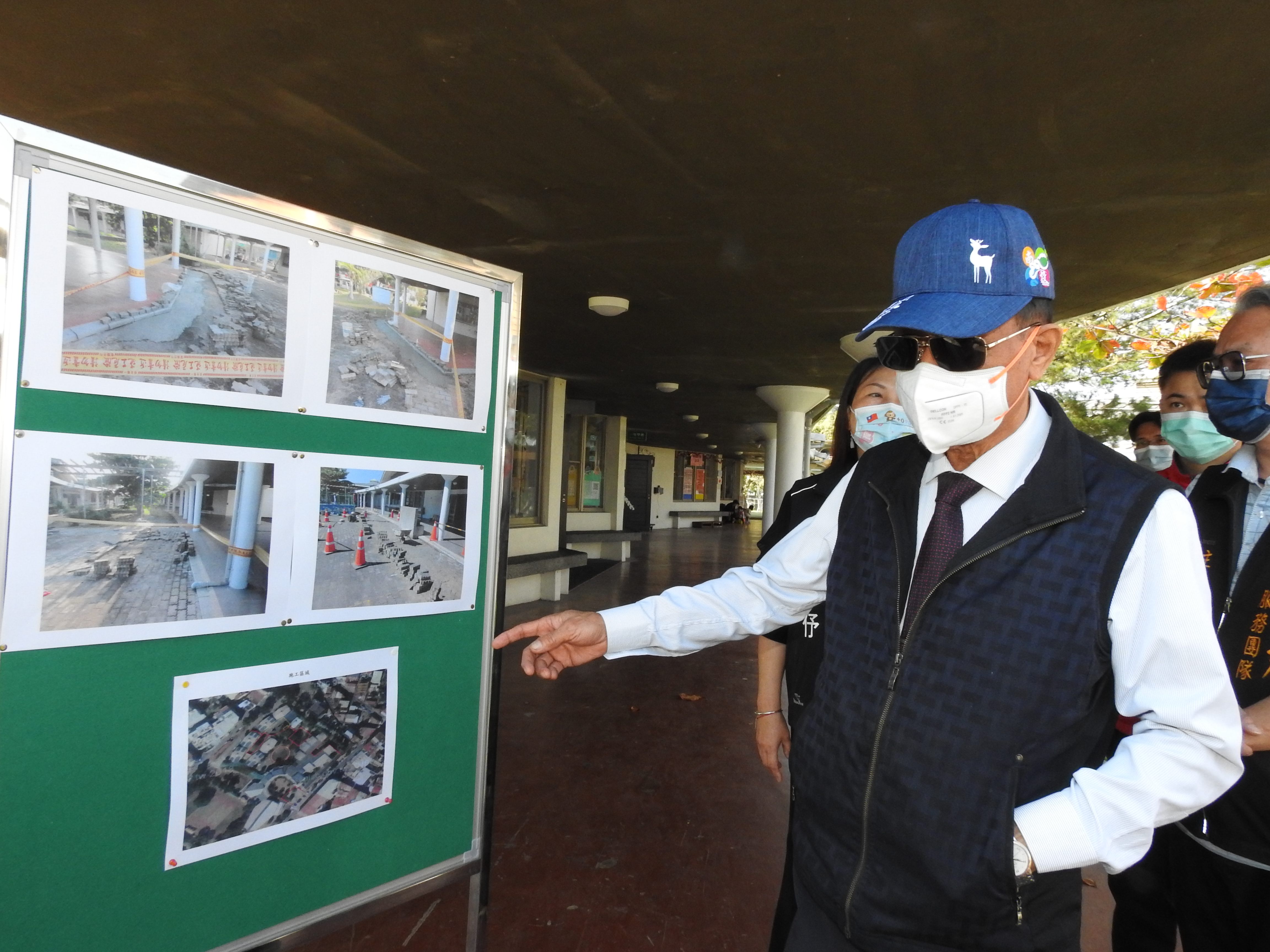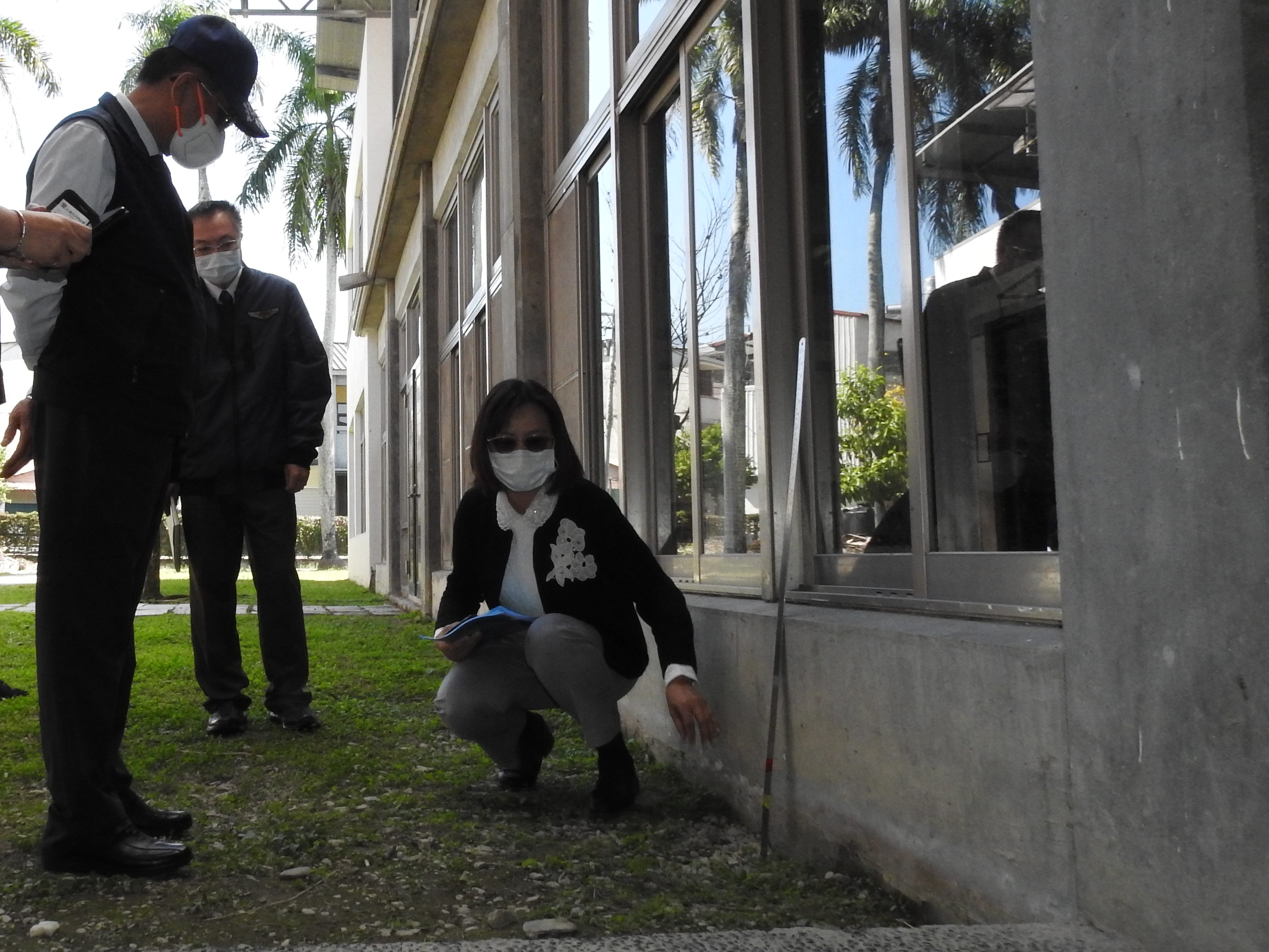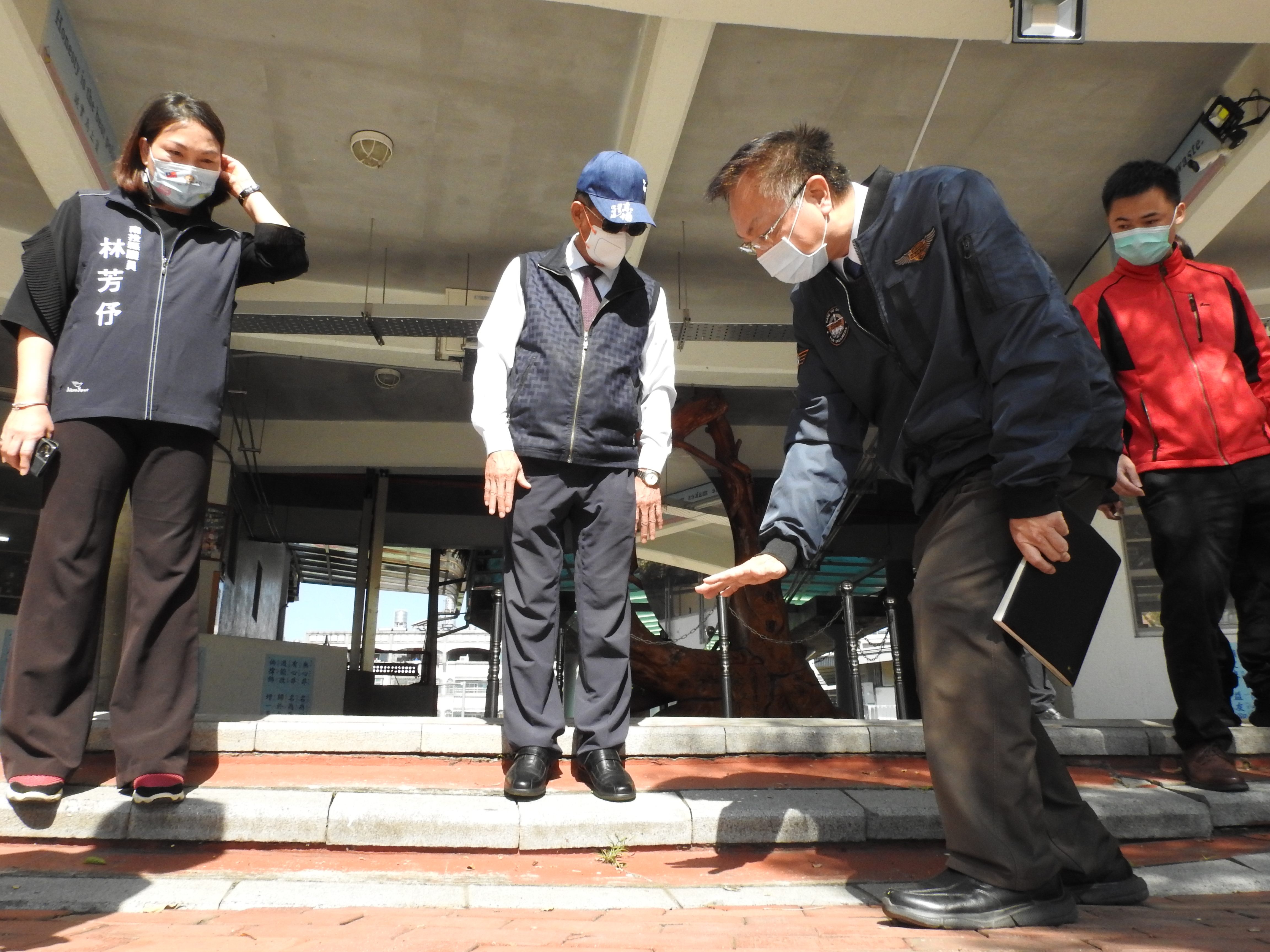 林縣長說,育英國小沒有排水溝,雨水長期滲入地下,不僅常在強降雨後積水難消,也導致校舍基礎與下陷的校園地面脫離裂損,唯有增設完善排水溝將雨水導出校外區域排水才能根本解決問題。