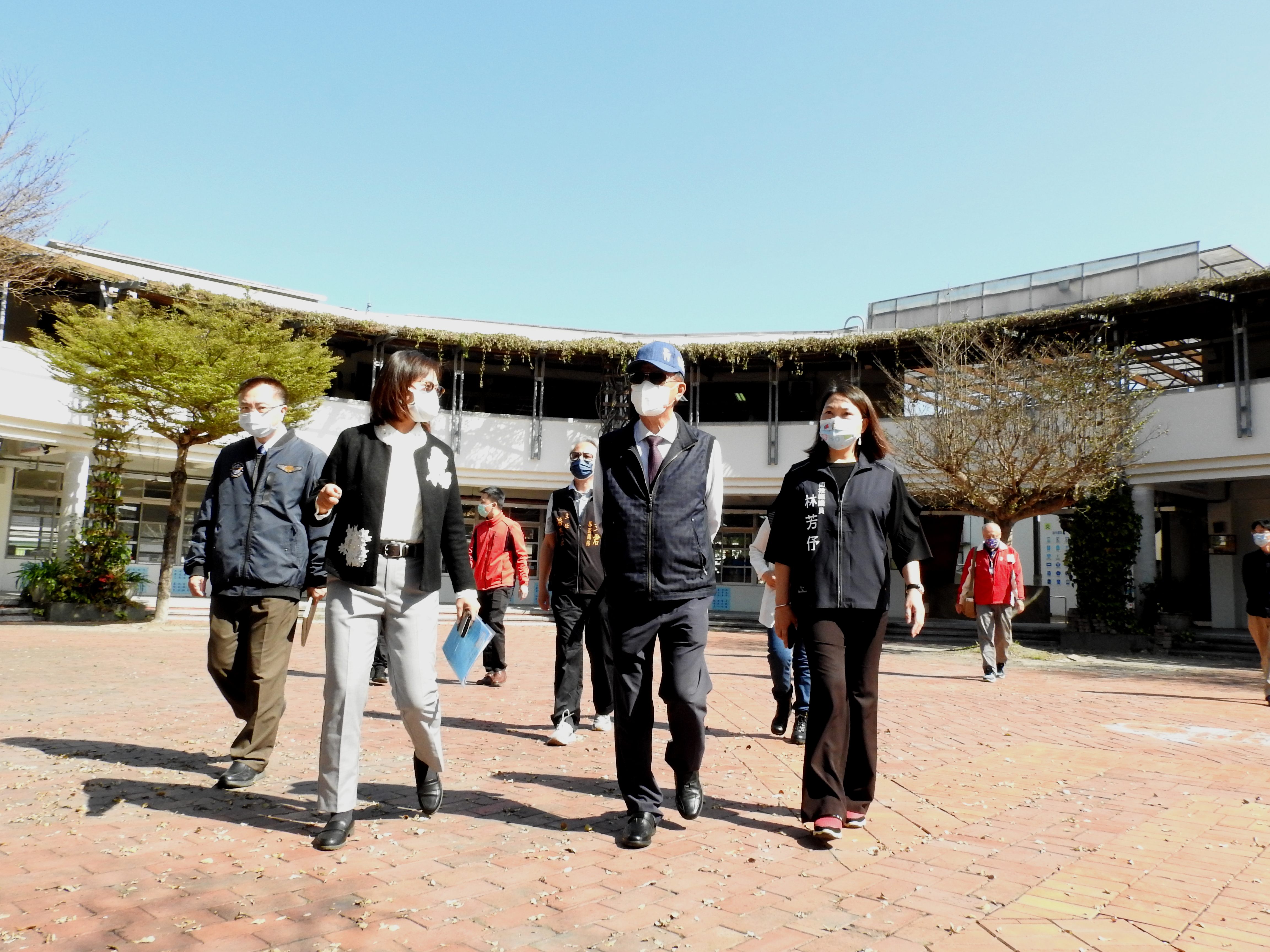 林縣長11日上午在教育處長陸正威、縣議員林芳伃、立委馬文君服務處主潘杰宏等人陪同,由育英國小校長林慧錚引導說明該校面臨的各項問題。