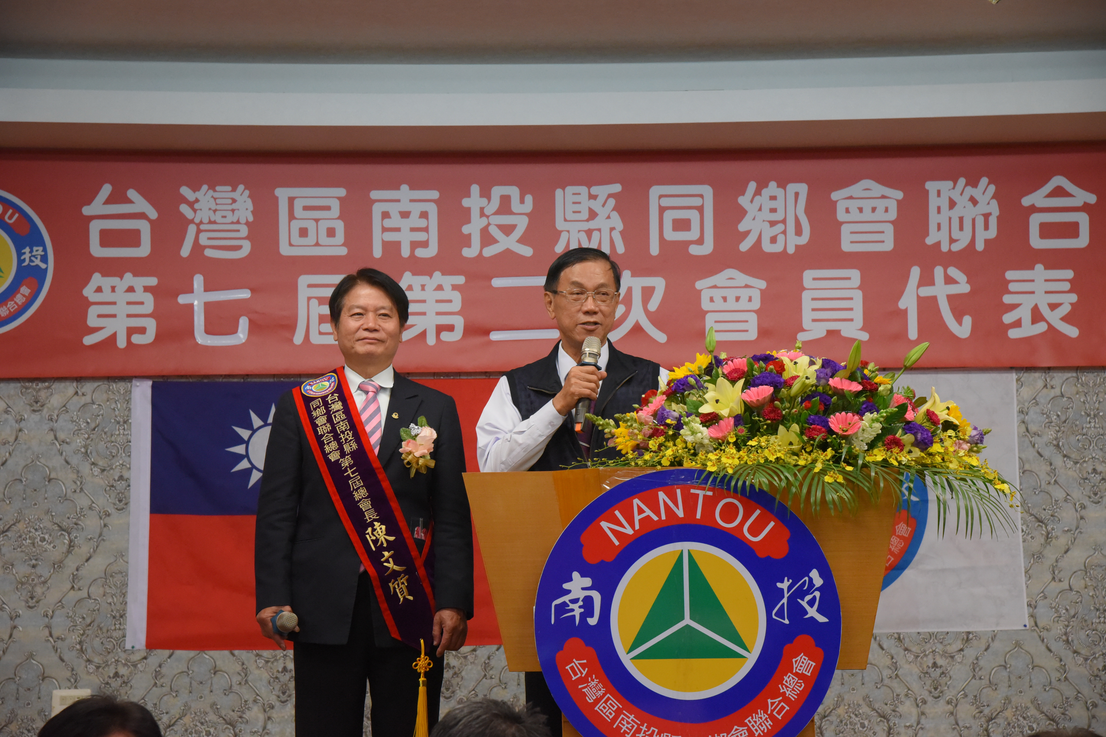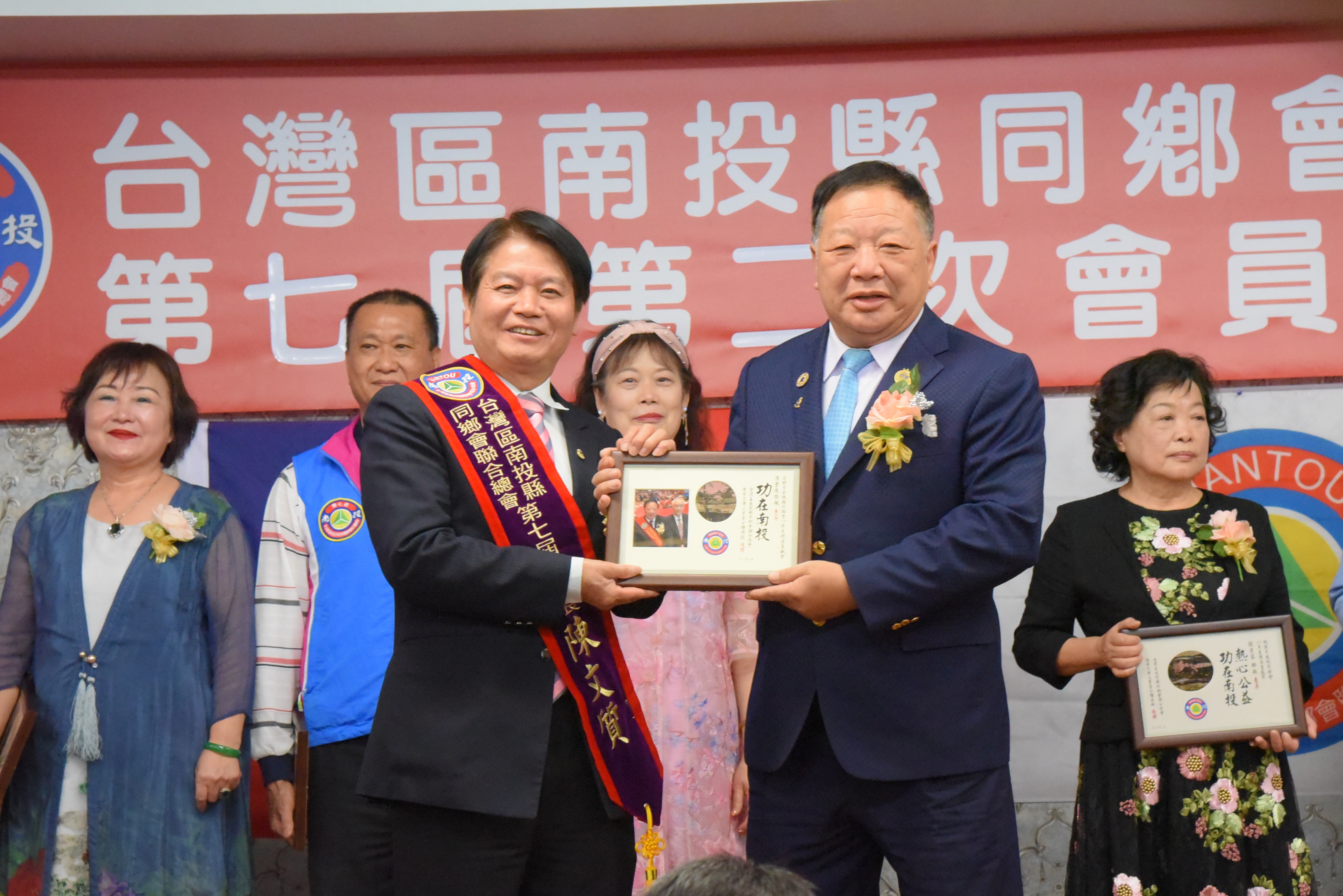 總會長陳文質感謝各縣市同鄉會配合,發揮南投人克苦精神,服務鄉親,也欣見南投愈來愈進步,大步向前,他並頒發貢獻獎給有功人員。