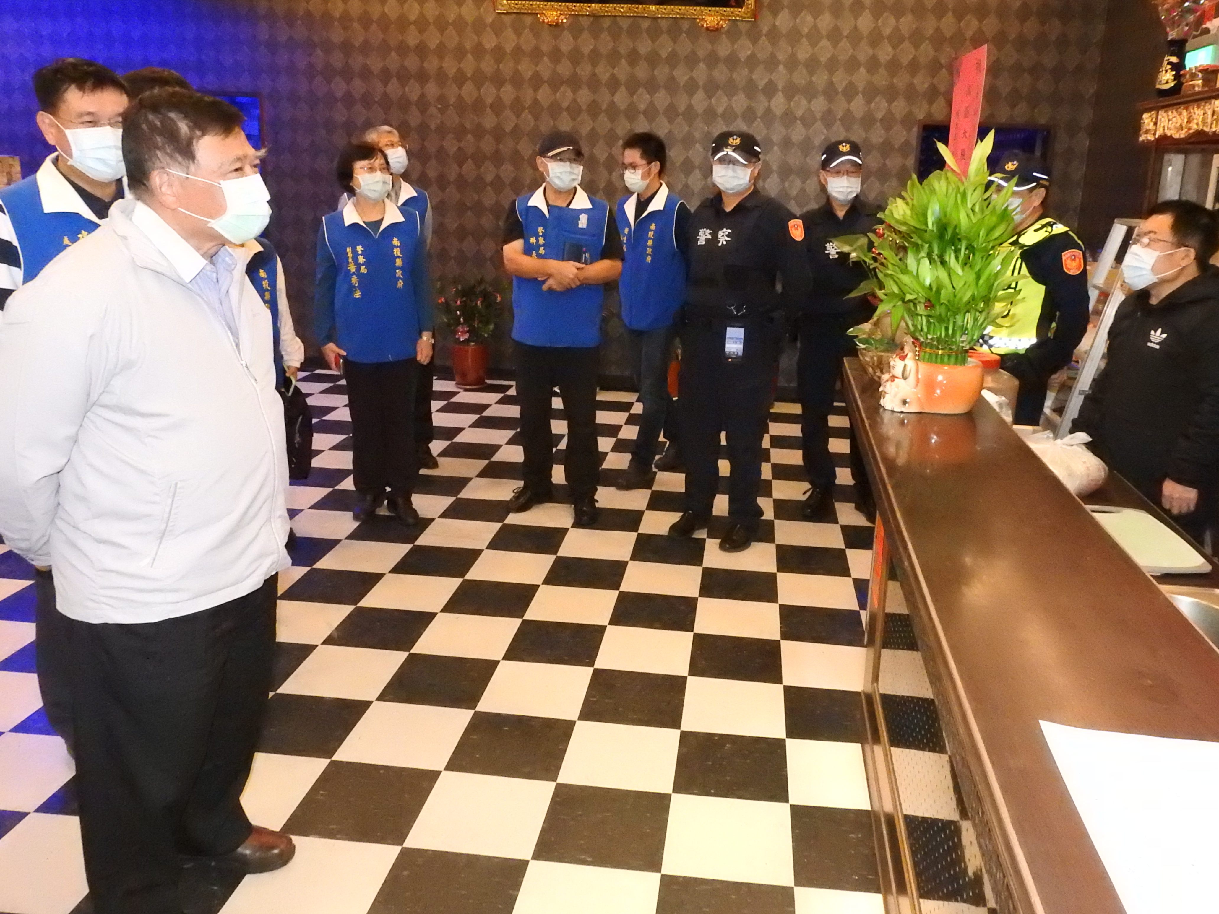 林縣長請大家配合以下措施:即日起舉辦宴席不得逐桌敬酒敬茶,僅能在臺上舉杯向各桌賓客敬酒敬茶,於臺下逐桌向賓各致意時,則須戴好口罩。