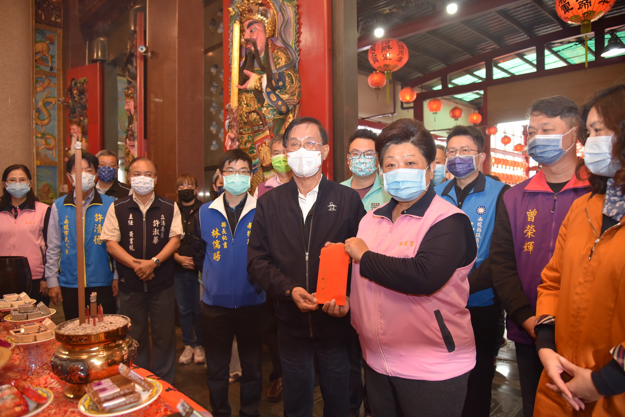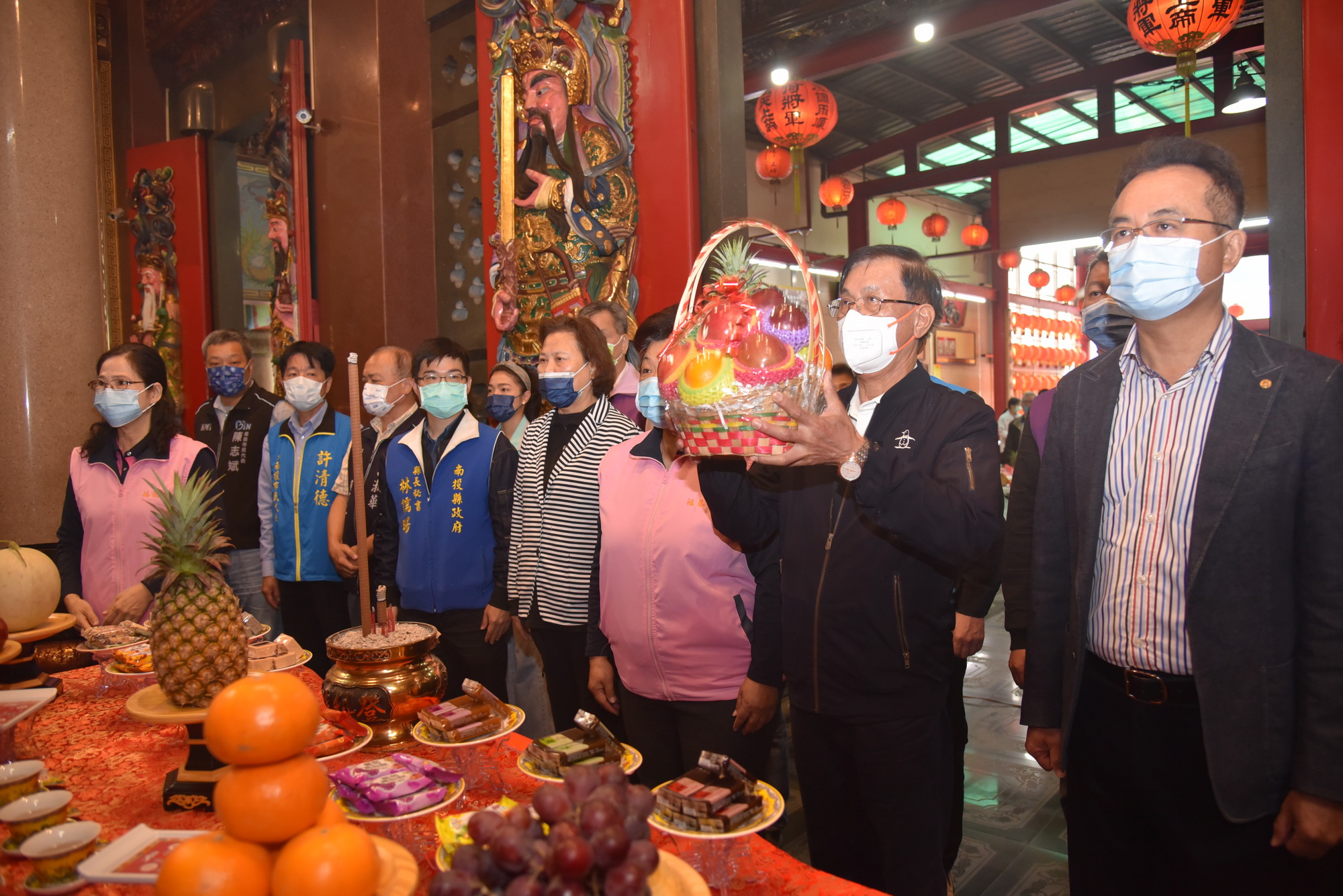 農曆3月3日欣逢玄天上帝聖誕千秋,縣長林明溱一早由秘書林儒暘陪同前往南投市營北里福龍宮賀壽,虔心祈求新冠肺炎疫情消弭,闔家平安、烏俄戰爭早日平息。