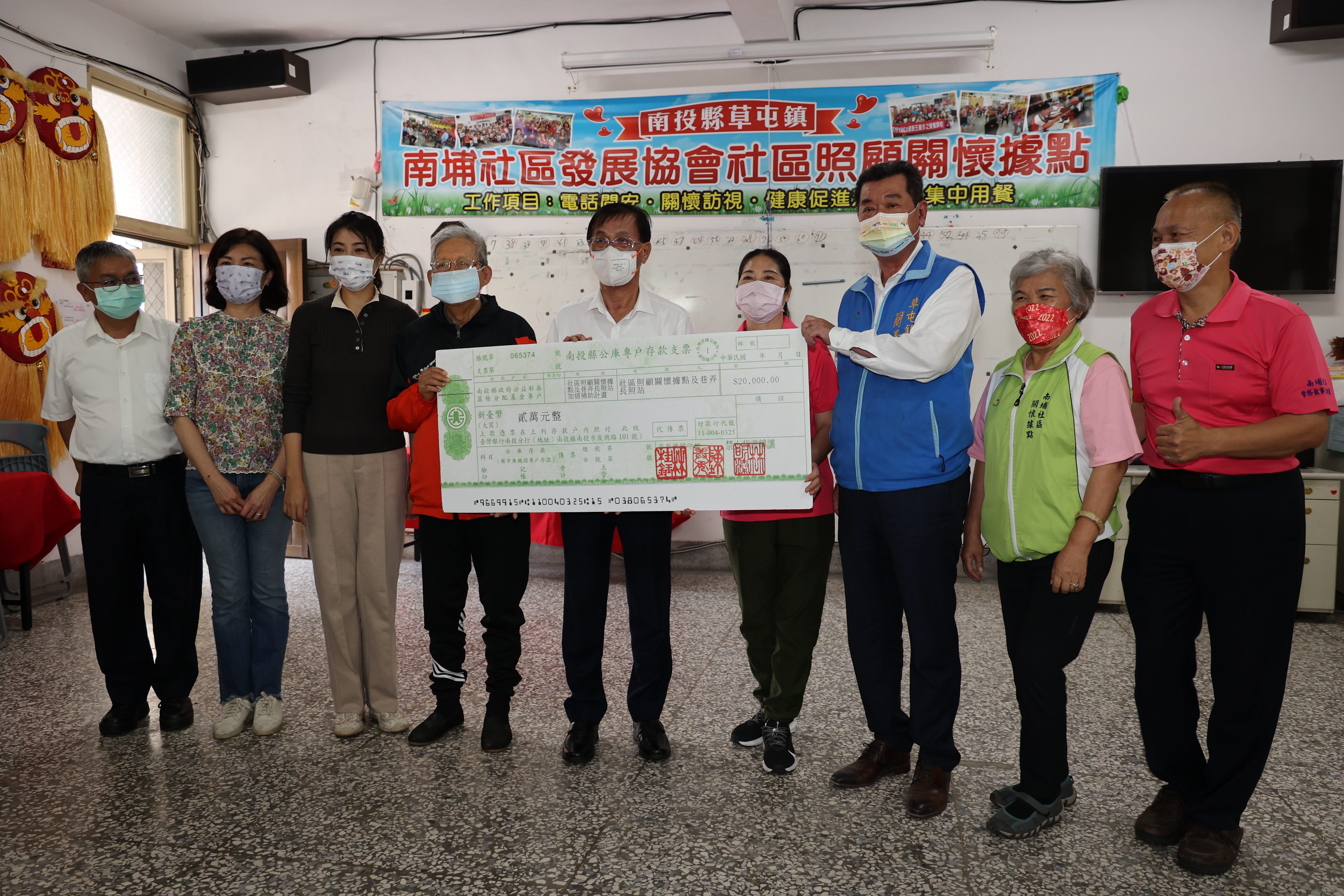 縣長林明溱關心草屯鎮社區長照據點長輩,21日下午偕立委許淑華、鎮長簡景賢、縣議員唐曉棻,在社勞處副處長張木斌、民政處長吳燕玲陪同下,探訪了南埔、御史、新庄三社區巷弄長照站,親切與阿公阿媽互動並致贈加菜金;也參拜了新興宮及朝陽宮,允諾協助設法改善長輩登樓不便及古蹟保存發揚等事宜。