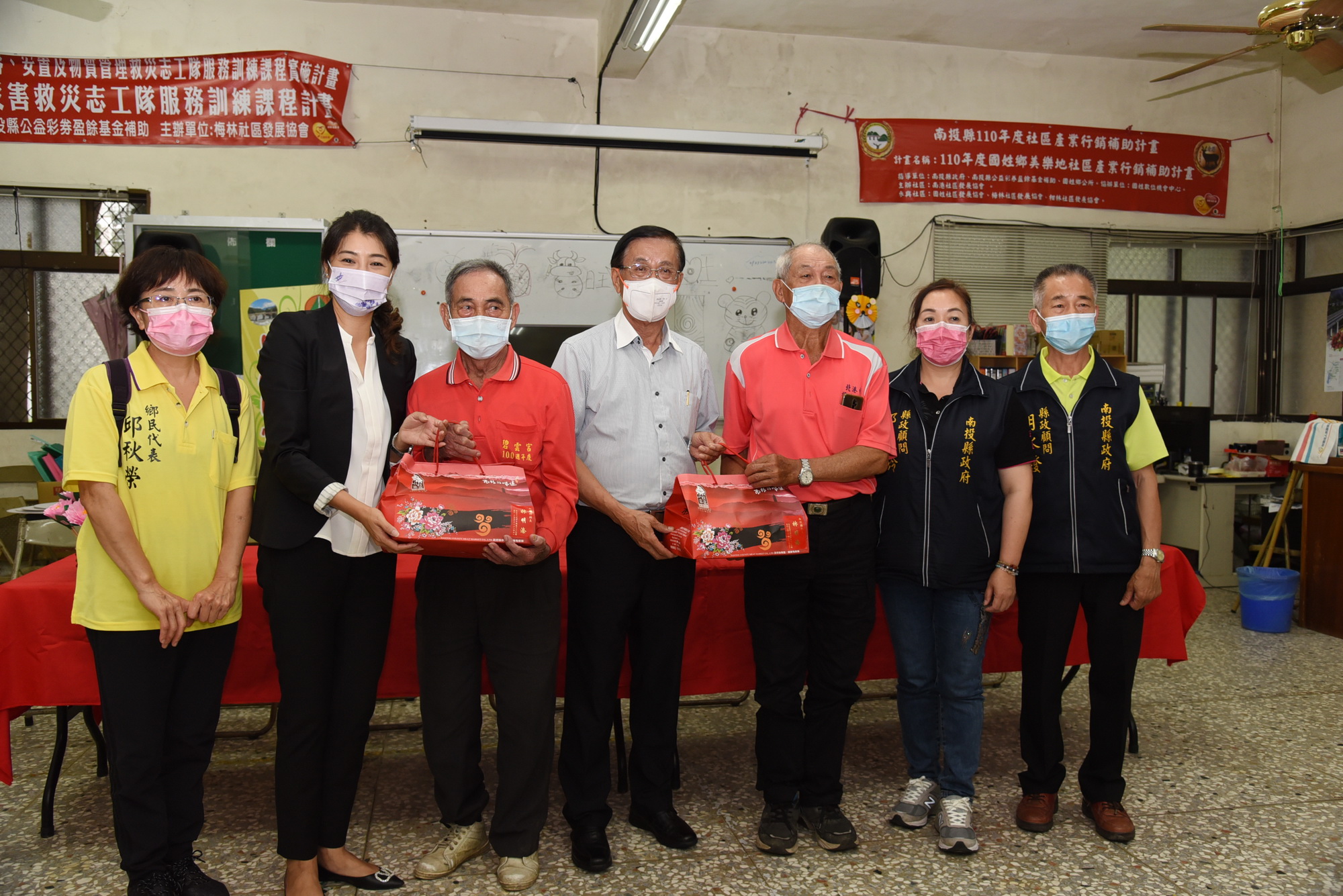 縣長林明溱偕同立委許淑華 25日下午深入國姓鄉三村落,訪視長福、梅林及石門三個社區關懷據點及巷弄長照站,親切的與阿公阿媽互動,關心大家的上課情形,並致贈加菜金及禮品,也到當地宮廟參拜祈福。