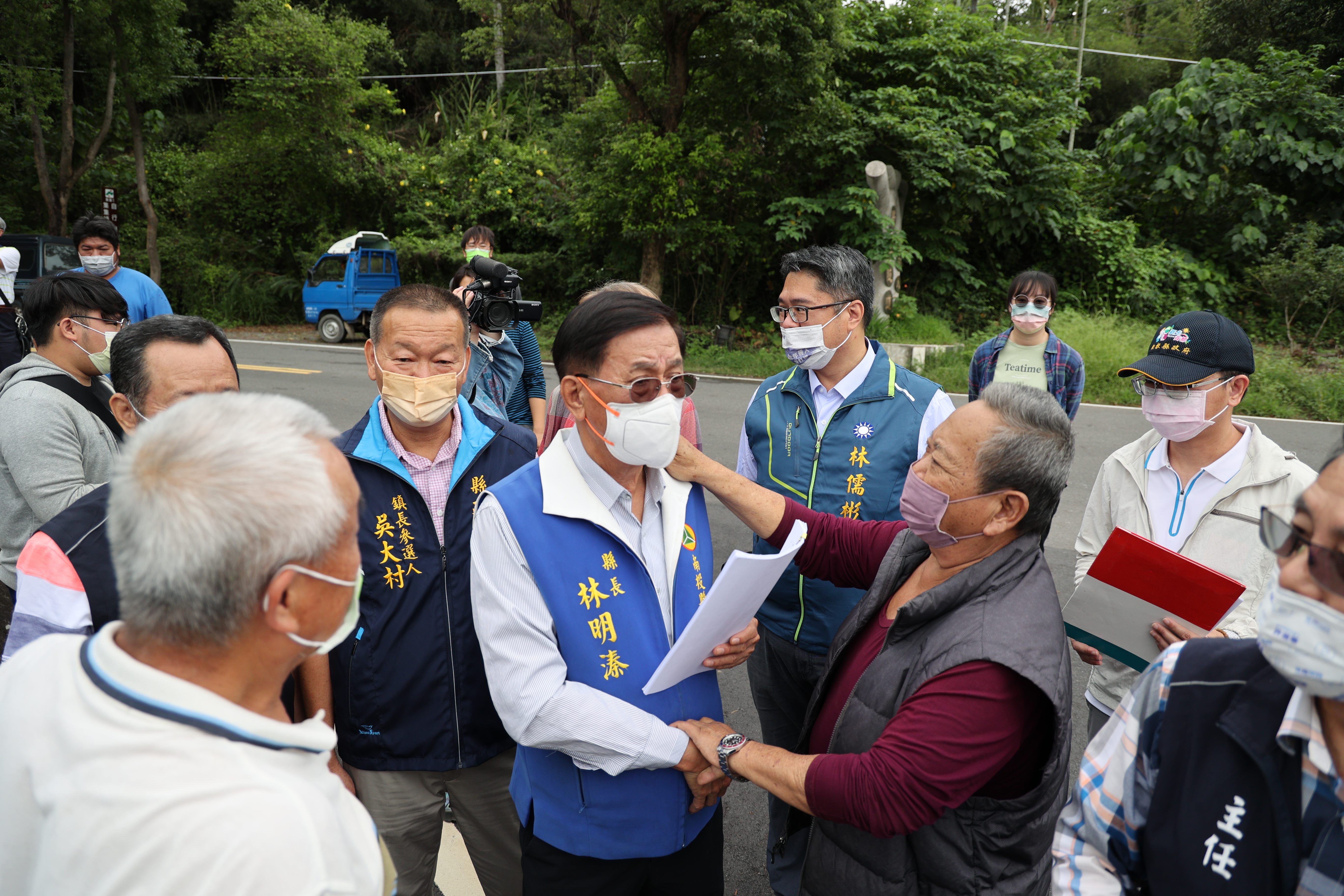 林縣長也簽核了田寮里草尾嶺巷農路改善工程約42萬元,將既有混凝土路面挖除重鋪改善長約60公尺、寬約4公尺,鋪設鋼軌樁4枝,並改善道路側溝。廣明里柴橋頭段北勢坑小段389-69地號農路改善工程45萬元,重鋪混凝土路面長約200公、寬約2.5公尺。廣明里頂城巷道路改善工程57萬元,刨鋪既有瀝青混凝土路面改善長約250公、寬約3.5公尺。