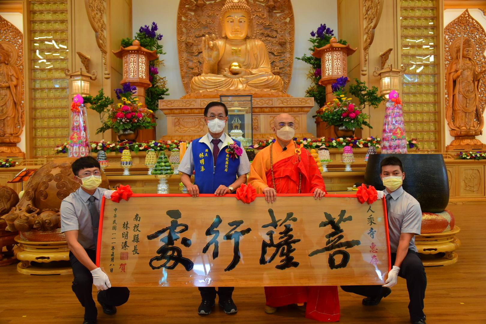 921大地震後,歷經20多年重建,魚池鄉人乘寺文殊院終於完成重建,8日上午隆重舉辦落成大典暨佛像開光安座法會,由住持大願法師主持,縣長林明溱、立委許淑華、馬文君、行政院中辦執行長蔡培慧、魚池鄉長劉啟航都出席大典,林縣長致贈老和尚法語墨寶「菩薩行處」匾額,祝福落成啟用,並和各界人士一起簽菩提葉祈福卡為臺灣和世界祈福,祝願「新冠疫情早消弭,災厄遠離致祥和,國界安寧兵革銷,風調雨順民安樂。」,大願法師特別感謝重建過程縣府團隊鼎力協助,讓人乘寺得以在文殊院原址重建永續正法法幢,儀式莊嚴隆重。