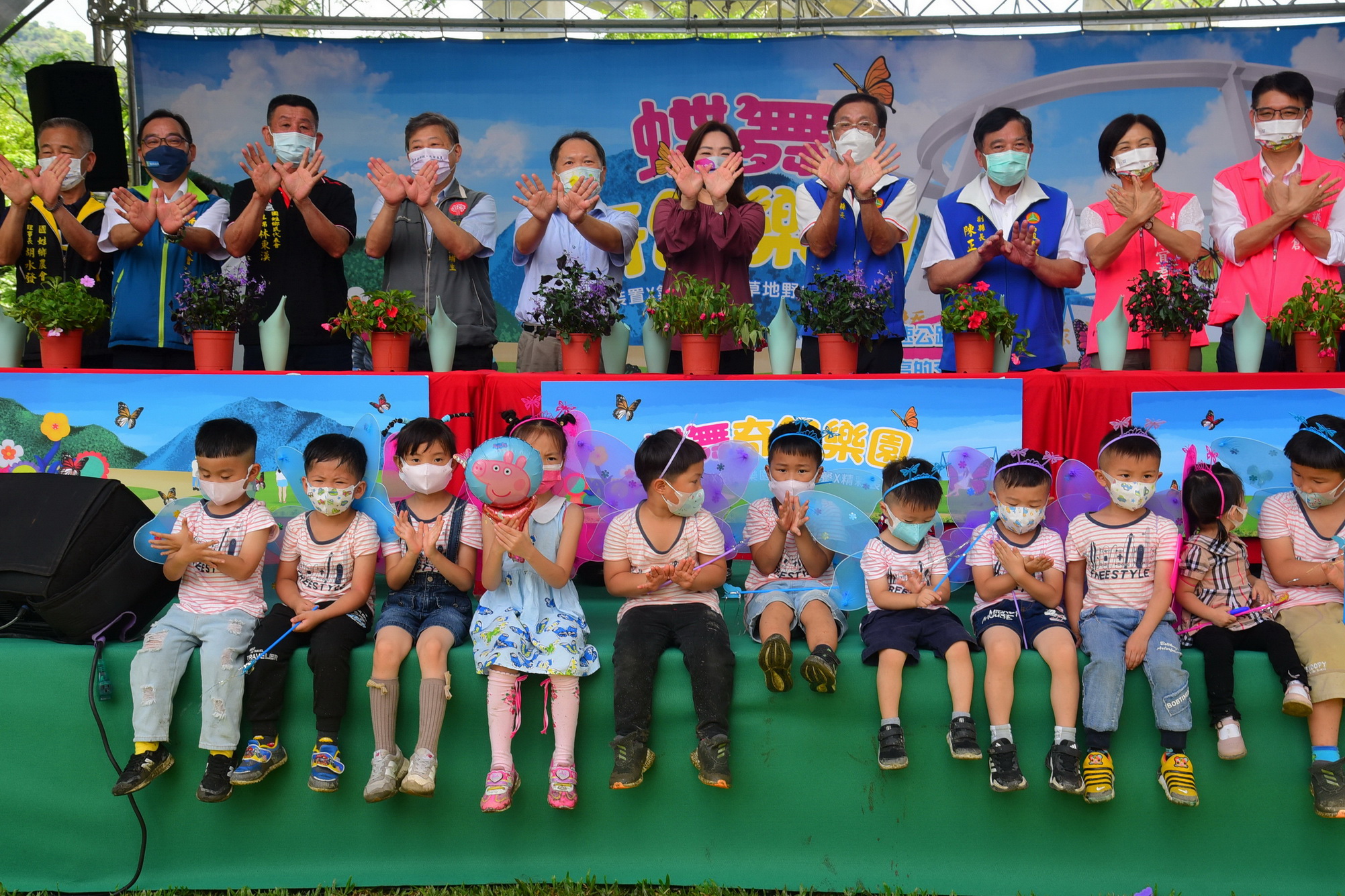 斥資3千多萬、耗時3年打造,位於國道6號國姓交流道下的「橋聳雲天綠雕園區」,6月華麗變身,從端午連假起連續3個周末,推出「蝶舞奇幻樂園」親子活動,3日由縣長林明溱主持開幕儀式,立委馬文君、交通部高速公路中區養護工程分局副分局長蘇英豪、縣議員林芳伃、陳宜君,葉仁創、副縣長陳正昇、國姓鄉長丘埔生、縣農會總幹事曾明瑞、國姓鄉農會理事長湖水發都到場參與,現場也吸引許多親子前來遊賞,並報名參加親子活動,讓園區充滿溫馨歡樂氛圍。