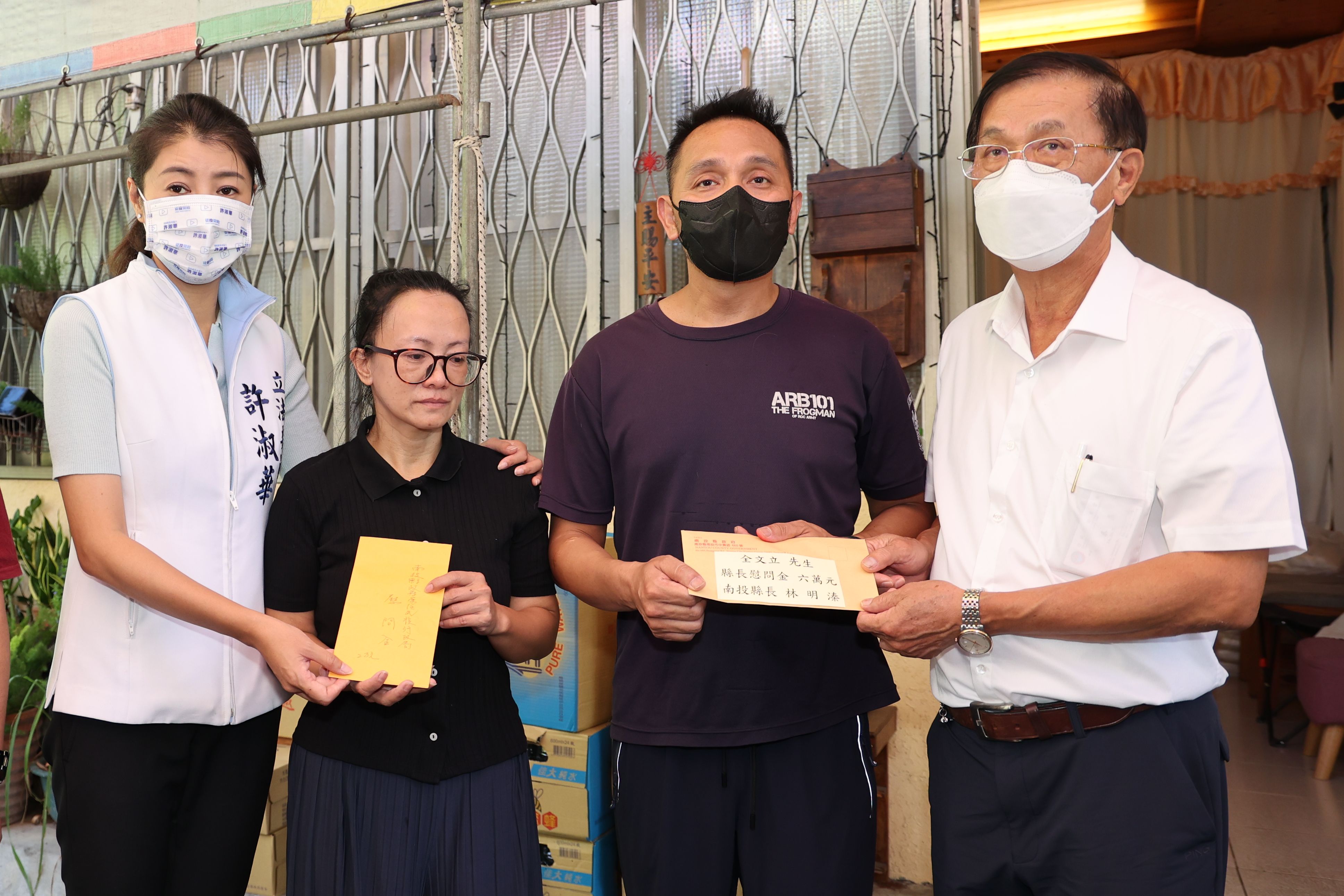 林縣長、許立委連袂致送全爸爸、全媽媽共8萬元慰問金,林縣長說,年初一架F16戰機訓練時墜海,也造成另一個優秀南投子弟陳奕為國捐軀,這次在裝甲部隊服役的全若堯又發生意外殉職,家屬當然非常希望清楚瞭解意外發生過程的真相。他在不捨南投子弟接連為國捐軀的同時,更希望國防部應徹底檢討改善更新各項裝備並防範類似意外再發生。全家的經濟並不寬裕,也希望國家能對殉職的全若堯從優撫恤。