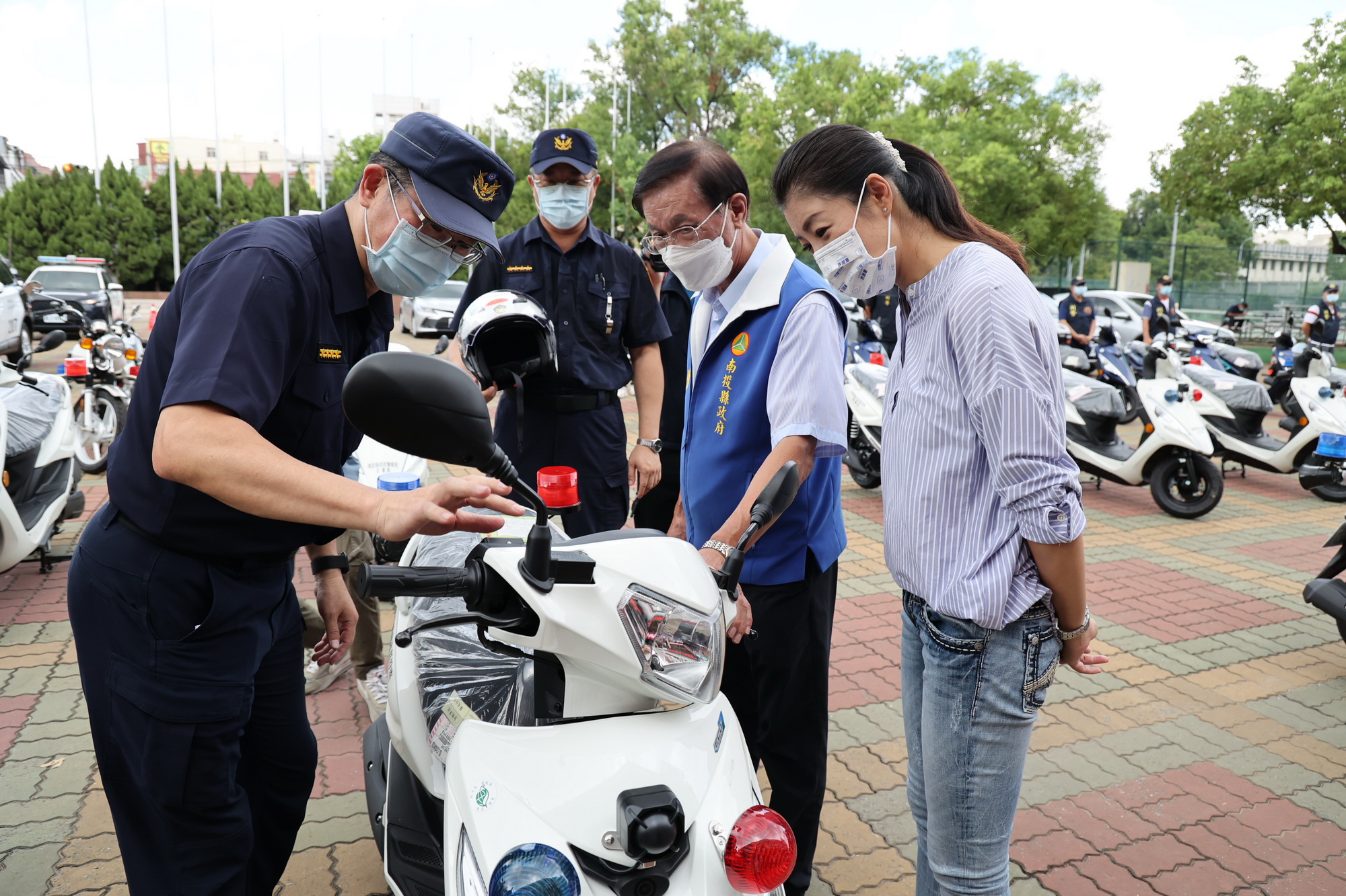 縣長林明溱體恤基層員警辦案辛勞,積極改善汰換警用車輛,除動用111年度一般性補助款編列預算1 ,330萬元,並額外加碼家購車預算1,000萬元,給警察局新購21輛警用汽車及警用機車56輛,19日舉辦交車儀式,縣長林明溱特別到場主持授車及校閱儀式。