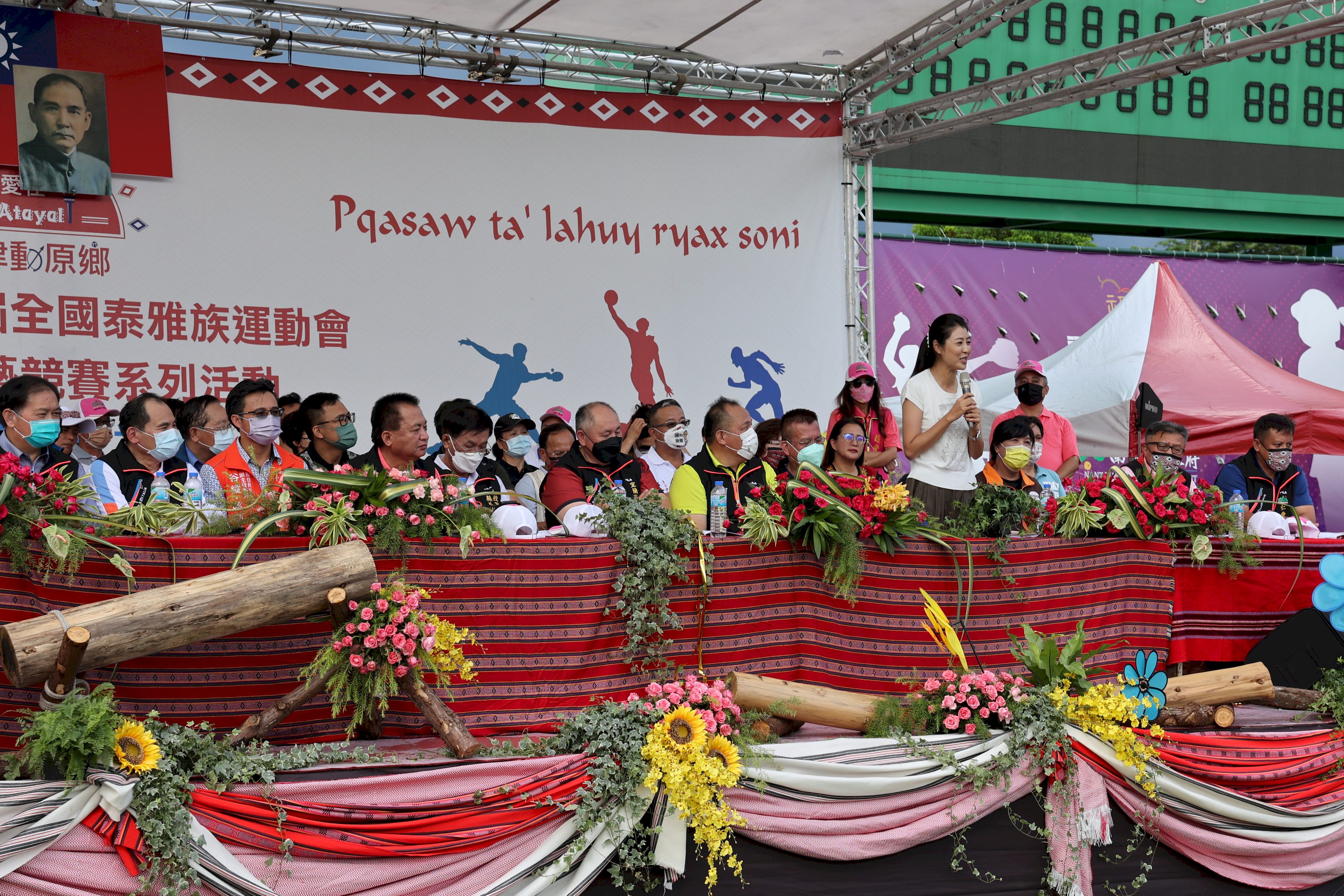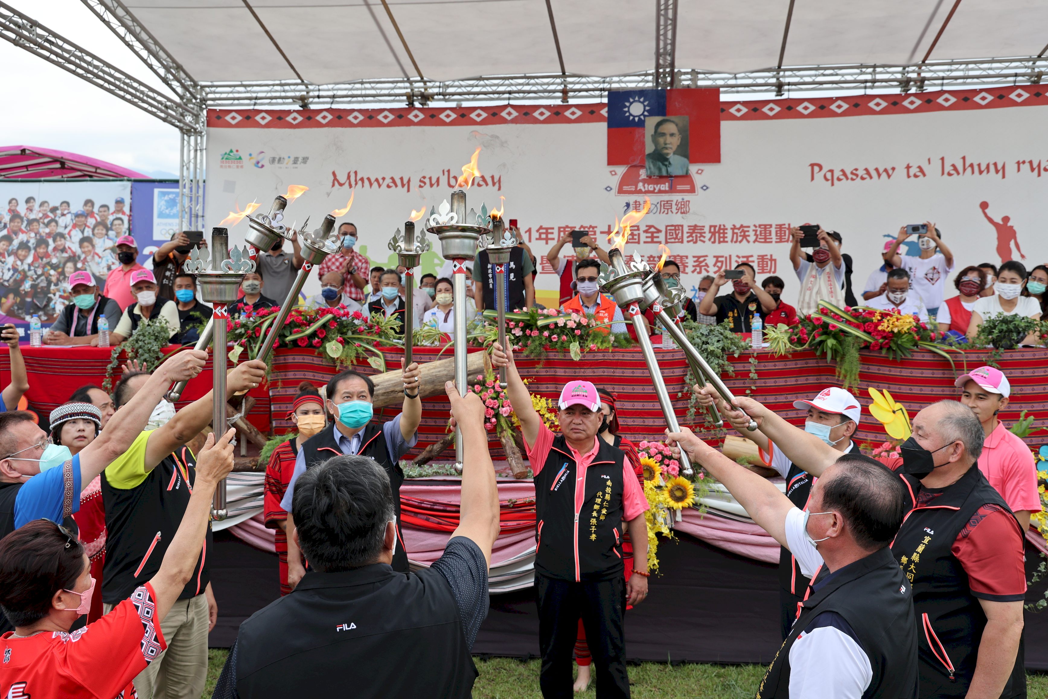 第10屆全國泰雅族運動會暨傳統技藝競賽開幕式,於下午3時在埔里鎮福興壘球場舉行,典禮由仁愛鄉長張子孝主持,縣長林明溱、原民會副主委谷縱‧喀勒芳安,原民局長史強、立委許淑華、孔文吉、伍麗華及縣議員石慶龍、全文才、廖文賢、信義鄉長全志堅都參加,而及來自南澳、大同、烏來、復興、尖石、五峰、泰安、和平及仁愛,共7縣9個泰雅族鄉、區長更全員到齊,以合舉點燈聖火的儀式,宣告象徵全台泰雅族人,既凝聚向心,又競合鍛練體能意志力的這場盛會必定圓滿成功。