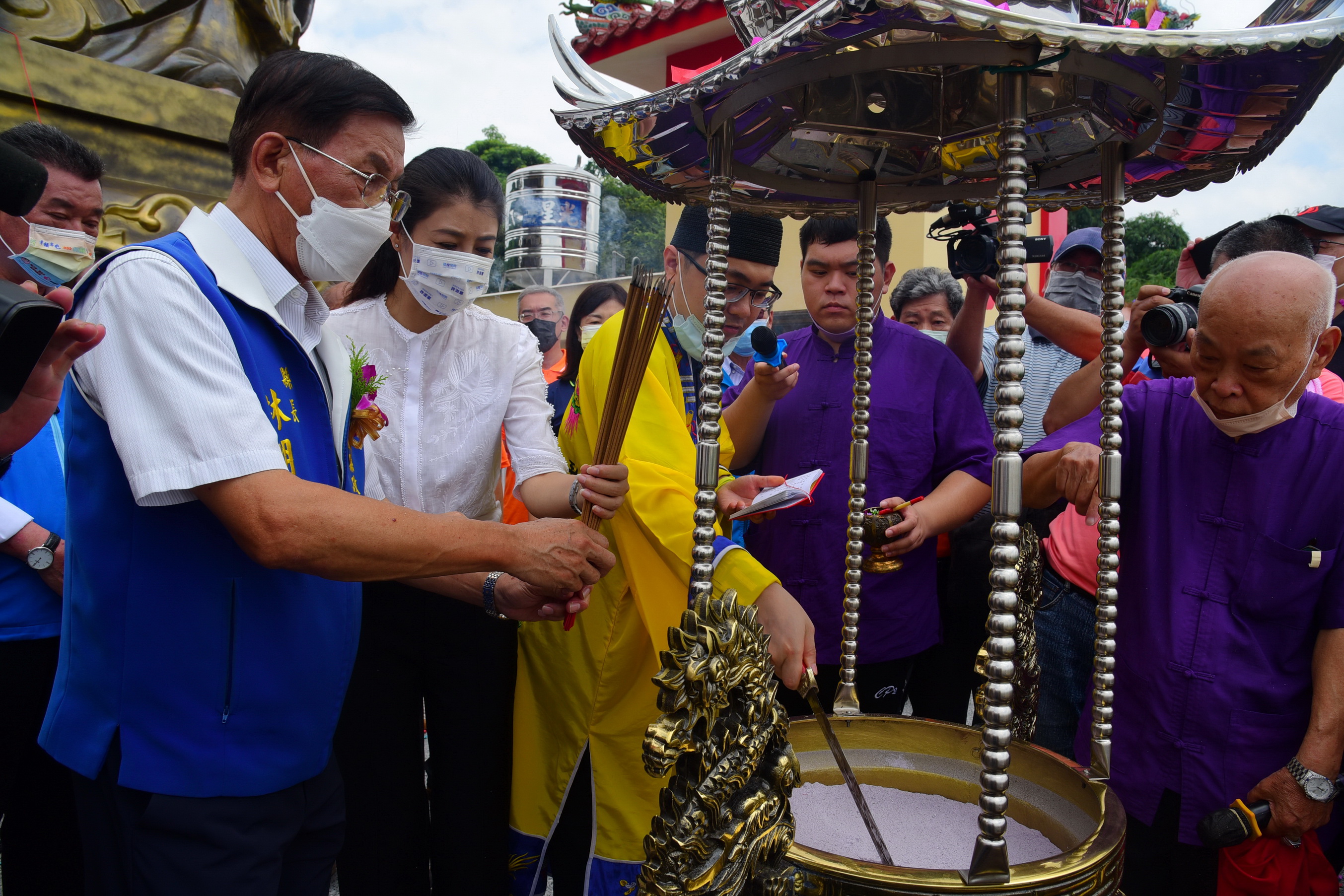 縣長林明溱31日前往草屯鎮朝清宮出席世界最大純銅媽祖神像開光安座儀式,並主持開香安爐揭幕大典,立委許淑華、馬文君、縣議員簡賜勝、簡竣庭、唐曉棻、鎮長簡景賢、草屯鎮民代表會副主席沈玉貞陪祭,林縣長祈求草屯媽庇佑縣運昌隆,縣民安康幸福,新冠肺炎疫情早日退散,百業興盛繁榮,過程莊嚴隆重。 林縣長說,草屯鎮朝清宮媽祖廟,供奉主神媽祖,是由清水朝后宮湄洲天上聖母分靈,從一九六○年代起,即在地方救苦解厄,神威顯赫,教化人心,香火鼎盛,信眾遍布海內外,人稱「草屯媽」,是草屯重要信仰中心之一,廟方於二年前在主殿旁新建一座太歲殿,上方設置一尊純銅鑄造的媽祖神像,業已完工,神像連同基座高達12.5公尺,是當前世界最大純銅媽祖神像,不僅代表信眾對草屯媽的虔誠信仰,更增添本縣宗教文化特色,相當難能可貴。 許淑華及馬文君同聲表示,草屯媽深受信眾尊崇,是庇佑地方平安的重要信仰中心,信眾遍佈國內外,此次世界最大的銅鑄神像開光安座啟用後,定能發揚教化人心精神,吸引更多信眾前來參拜,成為本縣宗教新地標。 朝清宮主委黃添榮表示,在草屯媽指示下,4年前開始籌備太歲殿新建工程,於二年前斥資逾億元新建,並在上方設置純銅鑄造的媽祖神像,高11.9公尺純銅鑄媽祖像,連同大理石基座達12.5公尺,起造後因近幾年銅價飆漲,造價值高達近三千萬元,過程神蹟屢現,不論是土地取得或銅價,皆有靈驗,神像各部先在海外鑄造,再運回台灣組裝,原本計劃今年農曆三月媽祖聖誕時一併完工啟用,受疫情影響,貨櫃海運塞港而延宕四個多月,近期才組裝完工,正式開光安座啟用,是當前世界最大的純銅媽祖神像,組裝期間已吸引不少民眾搶先朝聖拍照,廟方為慶祝此盛事,連接三天聘請明珠歌仔戲演出,上下午各一場,還有高空煙火秀表演,相當熱鬧。