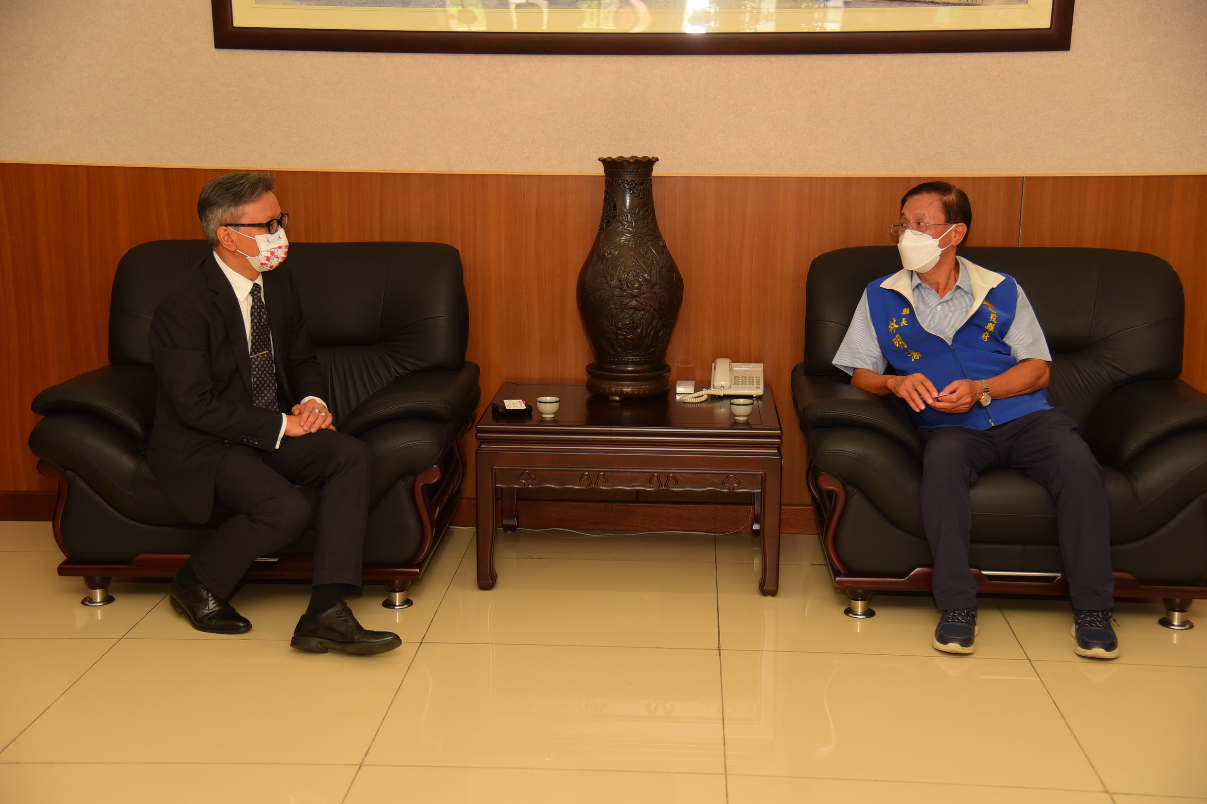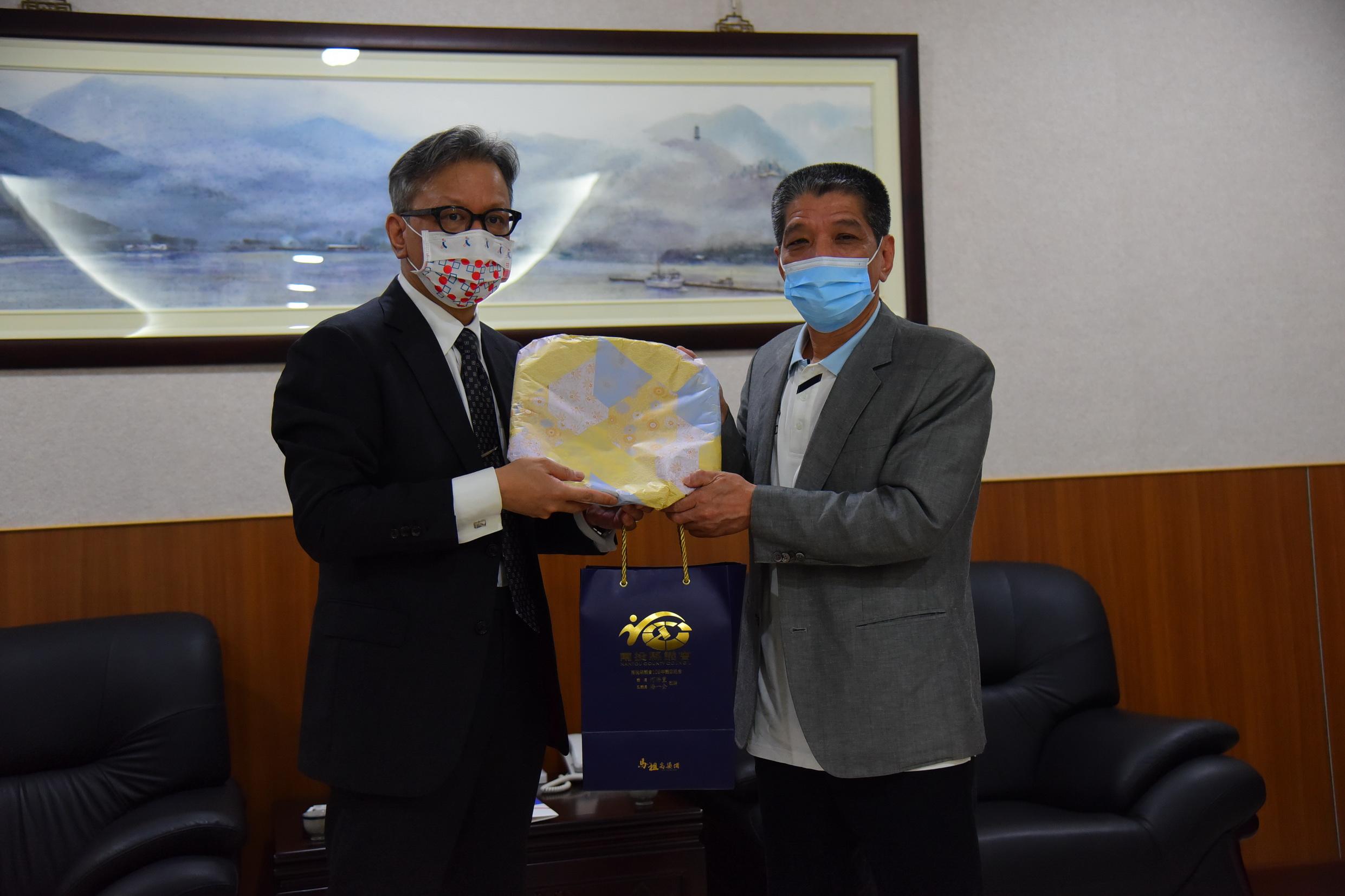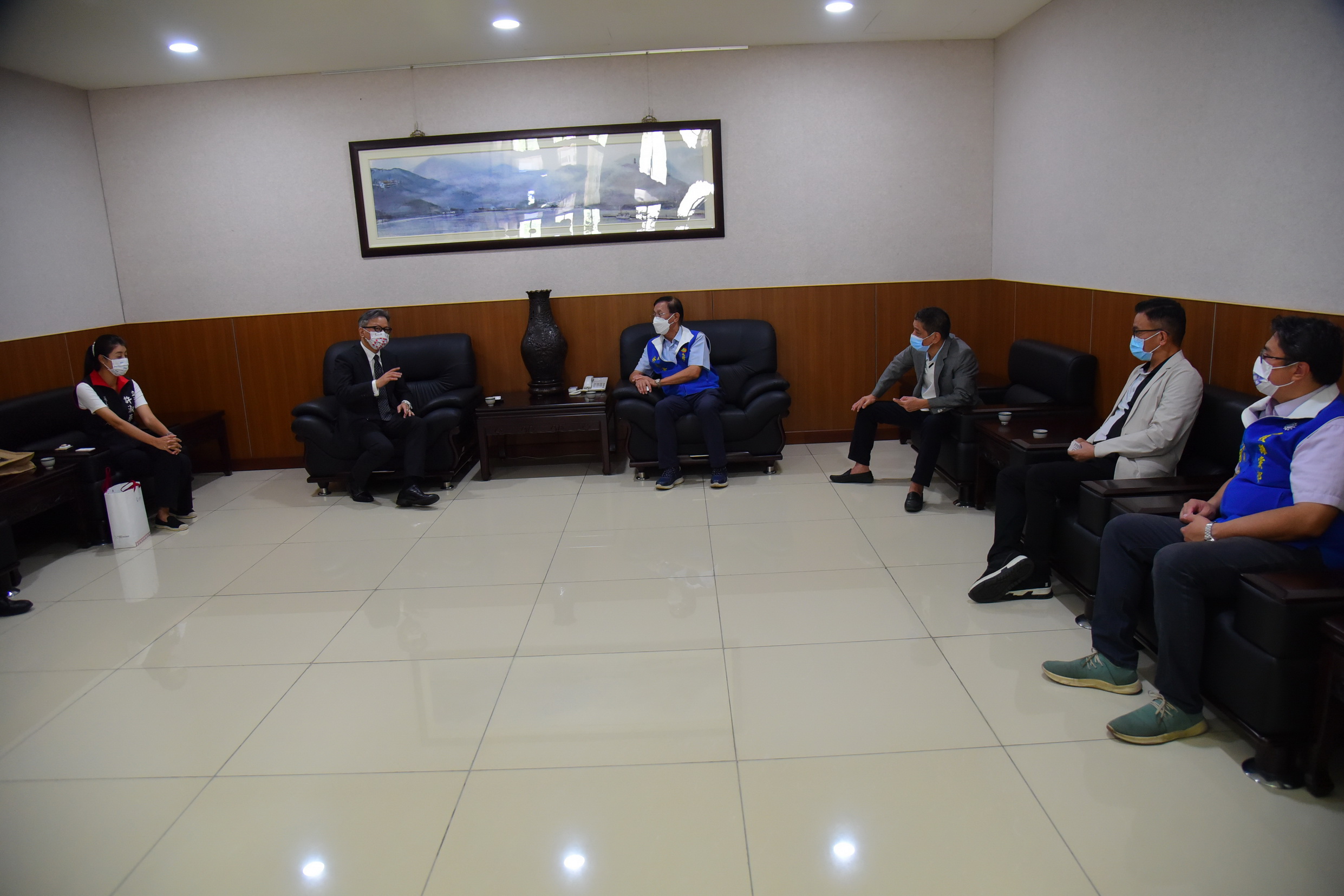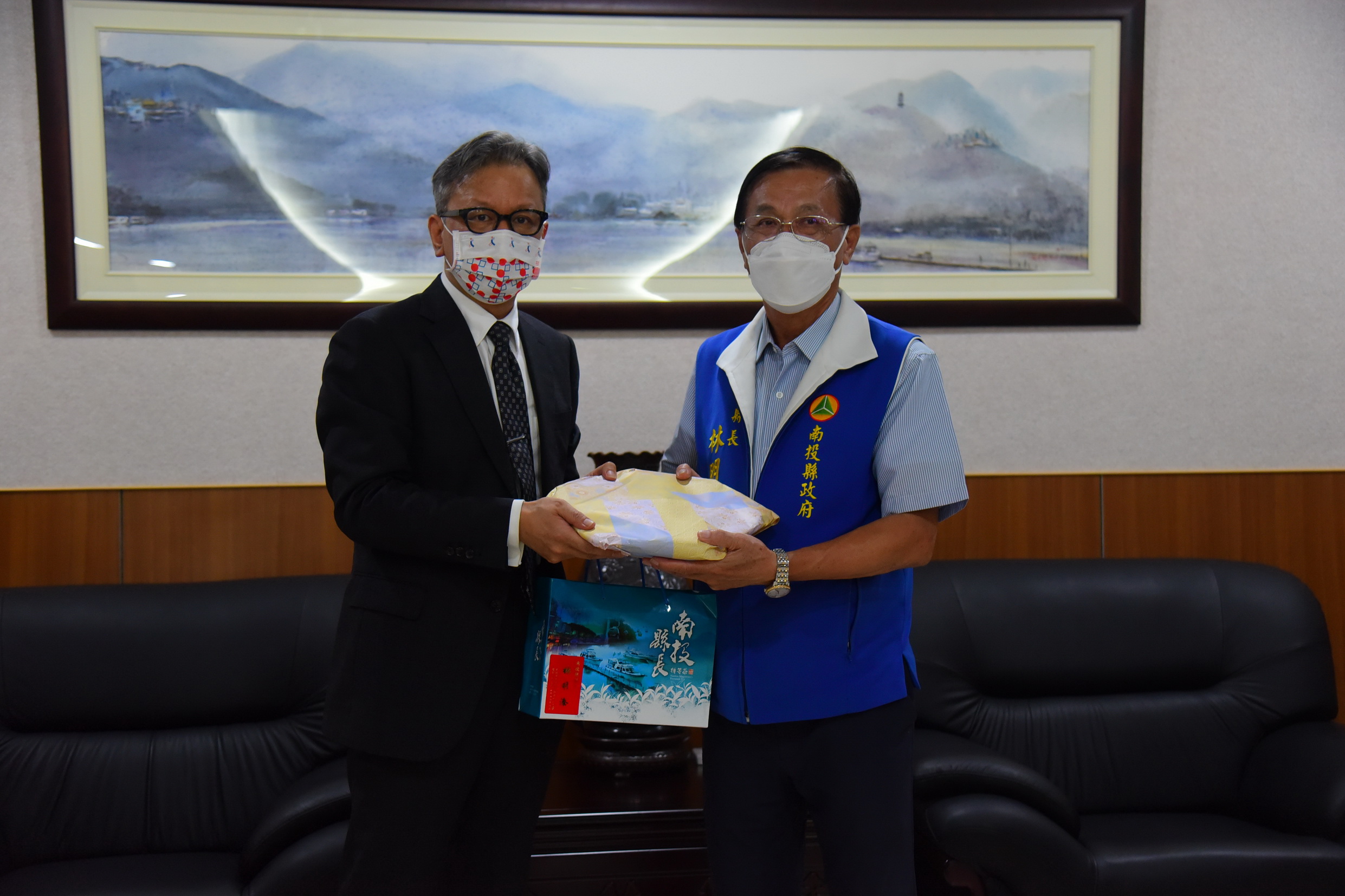 日本在台交流協會台北事務所副代表橫地晃等人4日抵南投拜會縣府及縣議會,縣長林明溱、立委許淑華、議長何勝豐及副議長潘一全於縣政總質詢休息時段,一起在縣議會議長室接待,會中就本縣與日本經濟、農業、觀光、文化等議題廣泛交換意見,也探討後疫情階段兩國民眾交流旅遊事宜,並交換紀念品,討論相當熱絡,因適值縣議會縣政總質詢,橫地晃副代表也順道參觀議會議事運作。