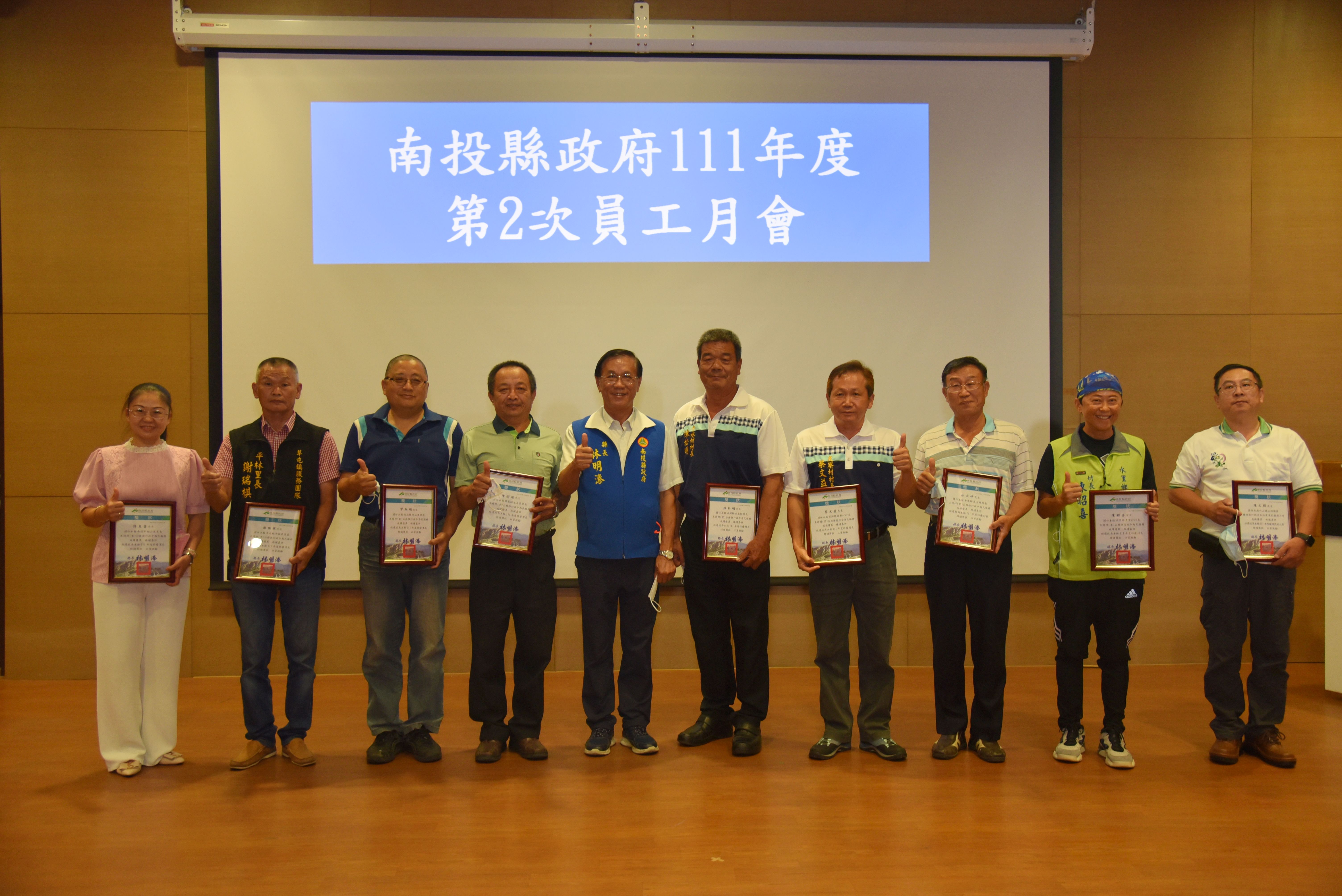 本次月會也頒獎表揚本縣110年度無犯罪績優村里、111年度特優村里長及績優民政人員、111年上半年度本府各單位服務態度考評成績優良。