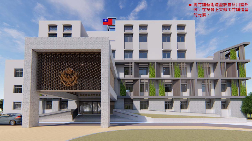 新建的竹山分局位在秀林段243地號,為地下一層、地上五層的建物,總樓地板面積約1,800坪,總工程經費約2億1千萬元。建物外觀以竹山特色文物發想,將竹編藝術品編織的紋理作為建物主視覺特色,內部規劃辦公室、宿舍、禮堂、體技場、留置室、通訊鐵塔、靶場、機房等,同時建構數位化及網路管理,為警方創造E化環境,工程預計112年2月13日完工。
