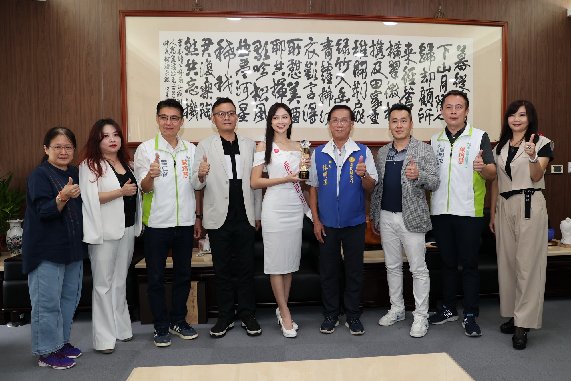日前參加「2022 Miss Asia Global 亞洲環球小姐大賽」榮獲才藝第一名、網路人氣獎、最佳精神獎等3個獎項的高曼容小姐,29日到縣議會拜會,縣長林明溱、副議長潘一全代表接見,並致贈獎座及南投特產,鼓勵她的優異表現,也希望她未來能再接再厲,持續在國際選美舞台上發光發熱。